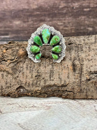 Handmade Sterling Silver Sonoran Mountain Turquoise Naja Adjustable Ring With Signed Nizhoni