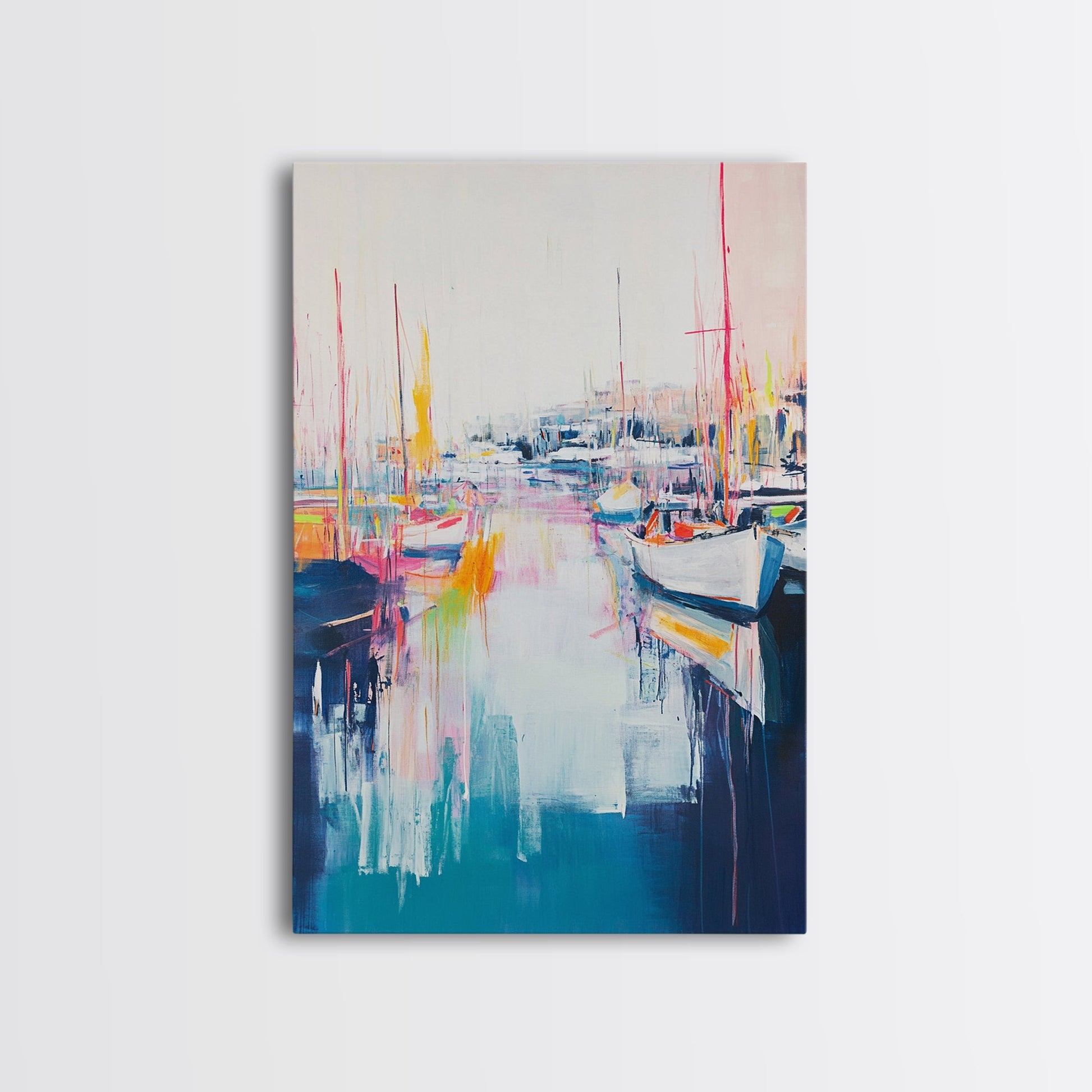 Harbor Sailboats, nautical wall art, seascape painting, coastal painting, sailboat painting, pink abstract art, Canvas Print