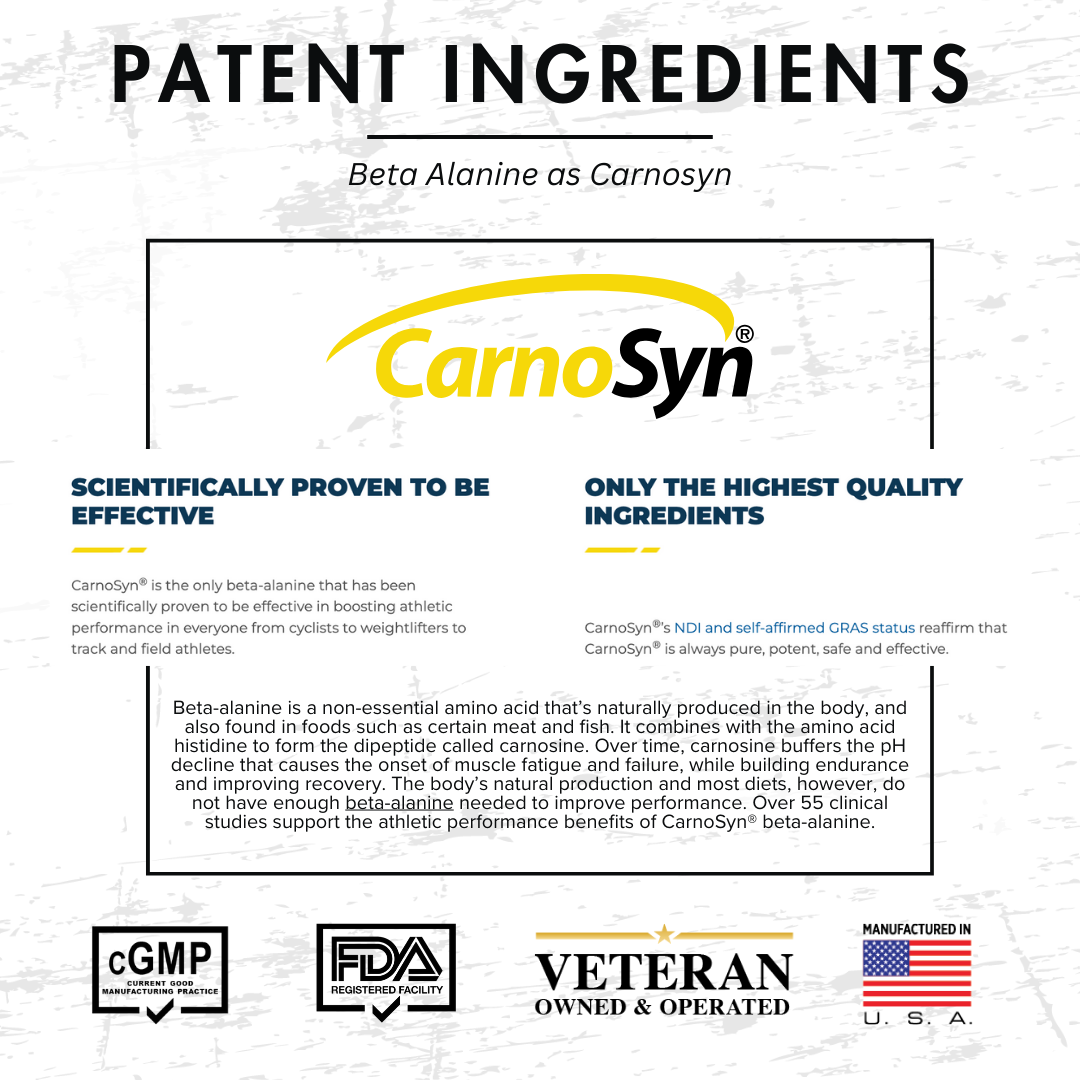 Beta Alanine sourced from Carnosyn® provides 3.2grams per serving.