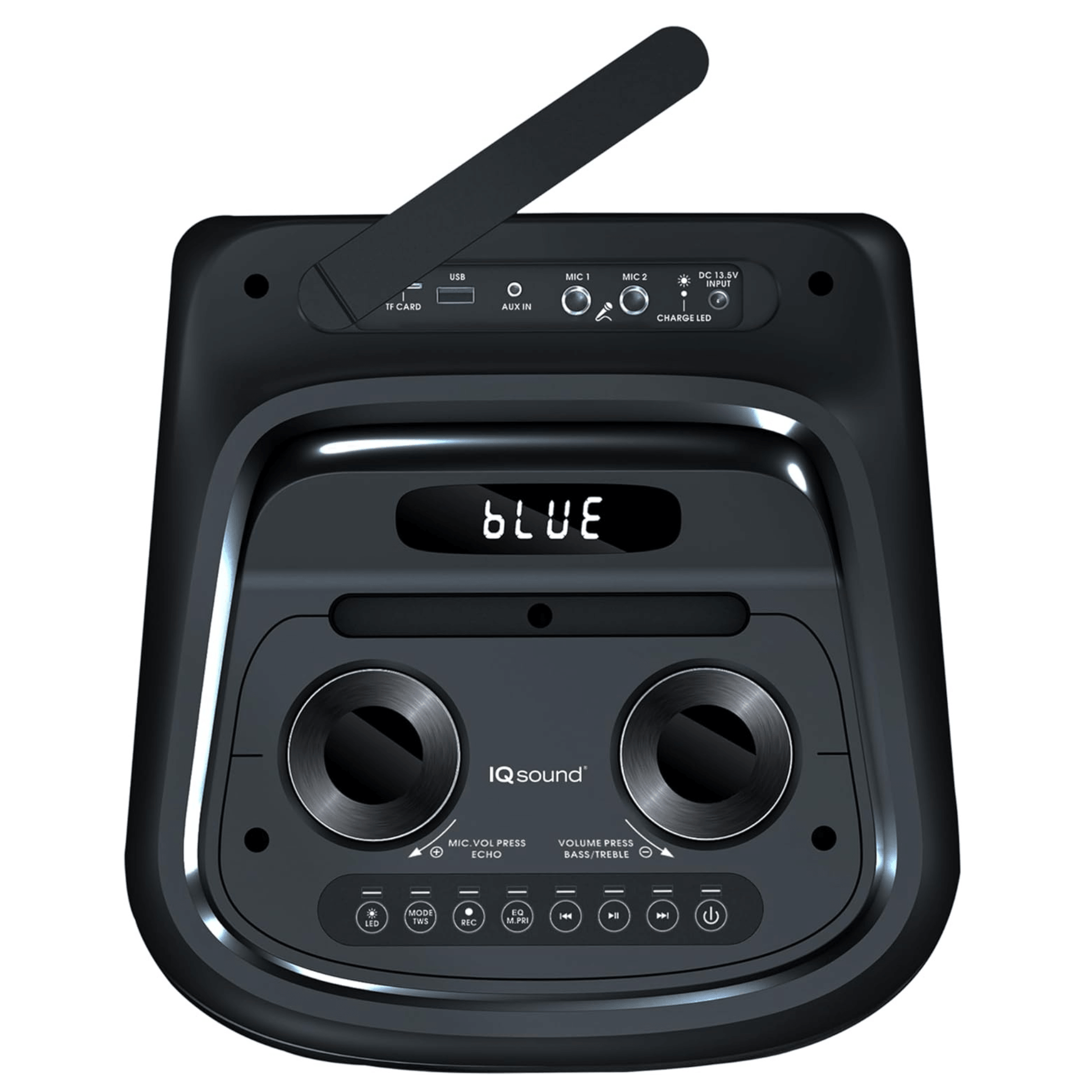 Elevate your audio experience with this powerful IQ Sound TorusFLEX speaker system, perfect for nightclubs, home entertainment, seminars, outdoor events, and more, delivering crisp, immersive sound that fills any space. With Bluetooth 5.0 and True Wireless Stereo (TWS) technology, you can pair two speakers for a full stereo effect, while multiple input options - including USB, Micro SD, AUX, and FM radio - let you enjoy music from virtually any source. Built-in LED lights add energy and atmosphere, and the user-friendly control panel with EQ modes gives you complete control over your sound, along with a recording feature to capture important moments. Designed for portability, it includes built-in wheels and a sturdy handle for easy transport, while the powerful 2x10" woofers and 1x1" tweeter deliver deep bass and clear highs with 100W RMS output. Powered by an 8000mAh rechargeable battery for long-lasting playtime and paired with a convenient remote control, this all-in-one system is ready to bring dynamic sound and style to any event.