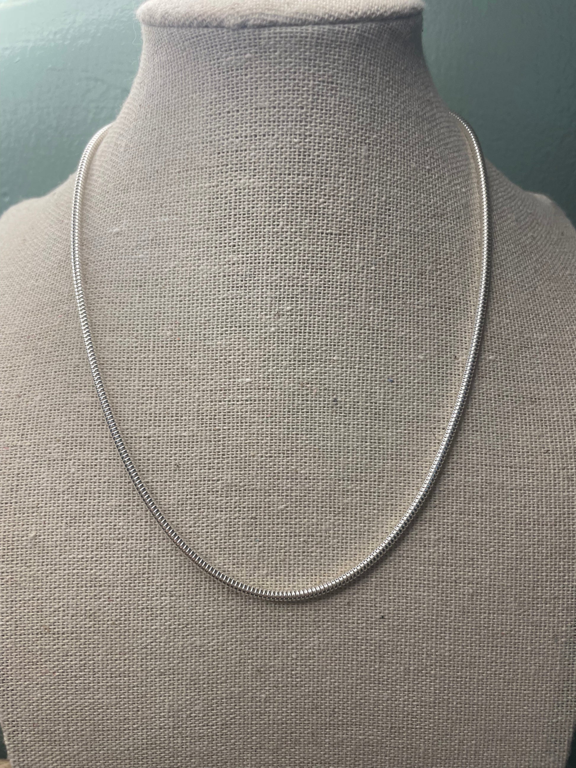 2.4mm Sterling Silver 18 Inch Snake Chain. This necklace is a beauty. Perfect for layering and everyday!