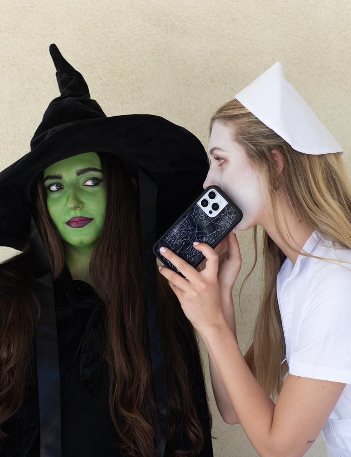 Our Itsy Bitsy Spider iPhone case features a tangle of delicate white webs spun across a deep, inky black background. Slightly mysterious and hauntingly cute, this case is perfect for the ones that keep it spooky year round. Donβt let it crawl away, add it to your collection before it vanishes into the night.