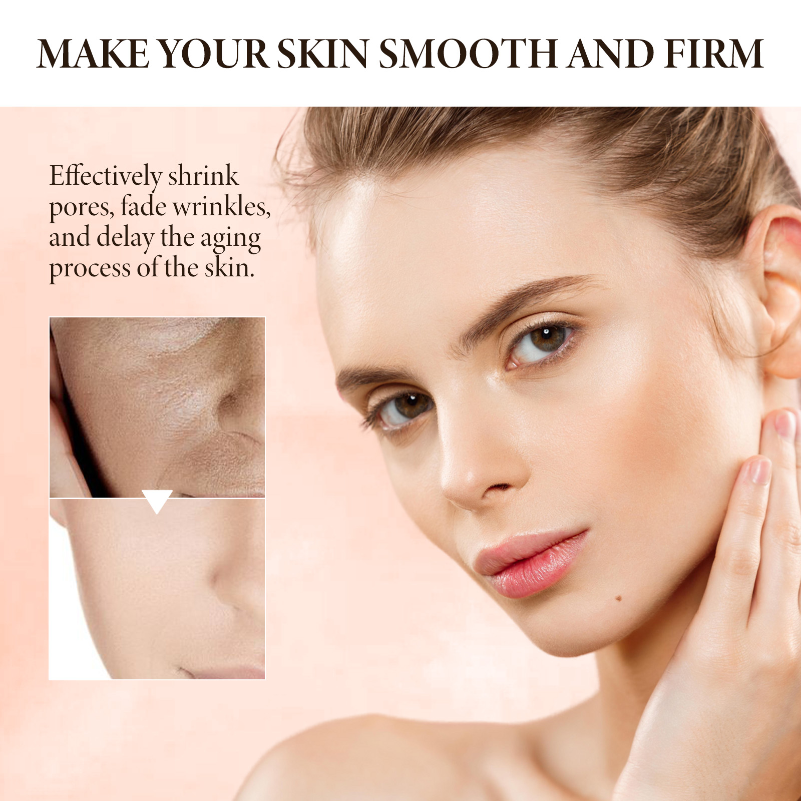 Our Strawberry Bha Pore-Smooth Face Serum contains salicylic acid, tapioca, rice. It can effectively shrink pores and reduce wrinkles, slow down the skin aging process, improve dull skin, fade spots, reduce blackheads and make you look younger. Its application method is very simple: clean and dry the face, take the appropriate amount of essence evenly apply to the skin, and gently massage with your hands until absorbed. It can improve the fine lines caused by dry skin, improve the skin water and oil balance, and gently soothe the skin.