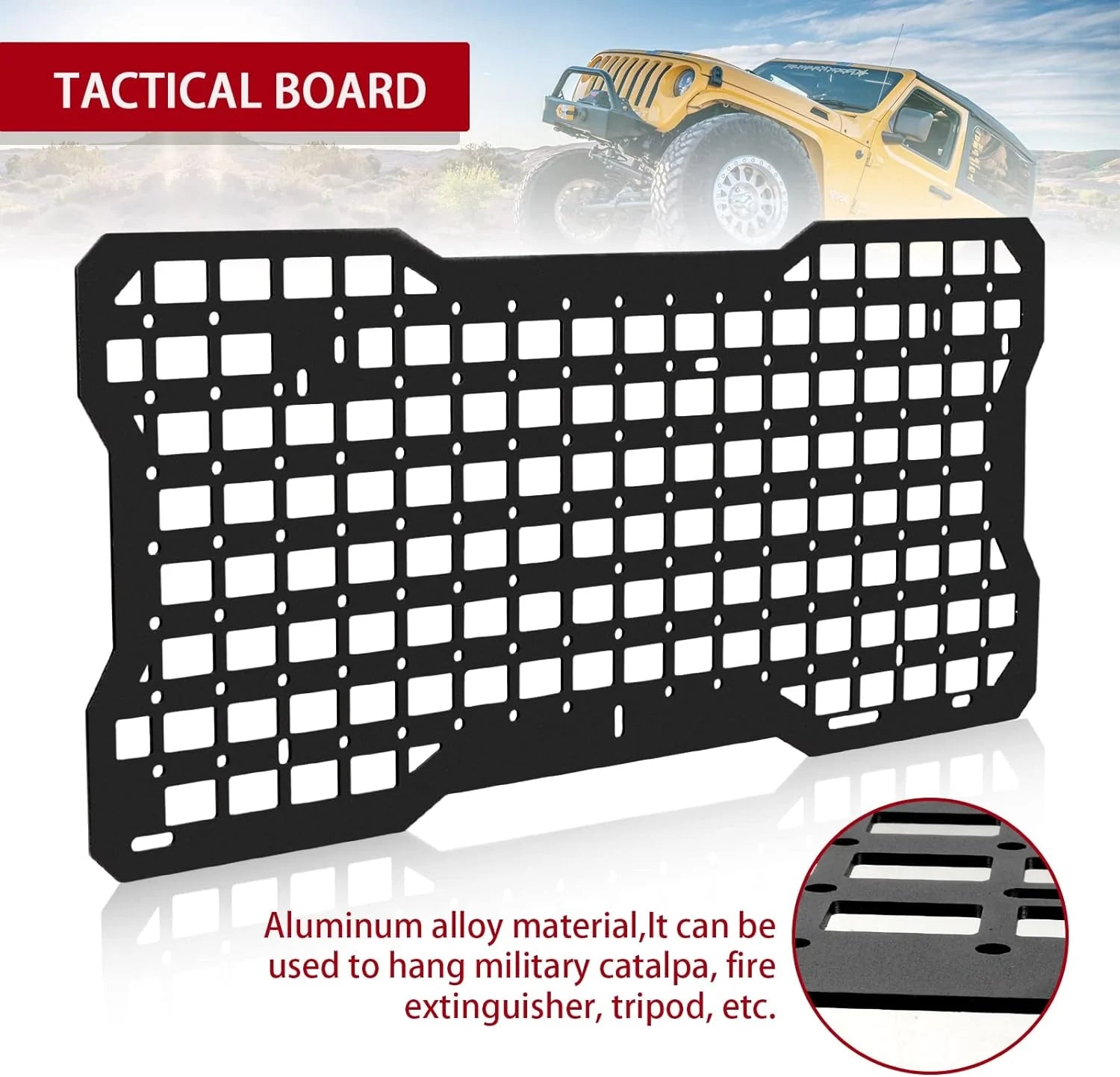 ✸Premium Durable Material: Crafted from high-quality aluminum alloy, the tailgate tactical MOLLE panel is waterproof, rust-proof, and easy to clean. Its robust construction allows it to withstand heavy loads without deformation or tearing, providing long-lasting durability compared to polyester alternatives.