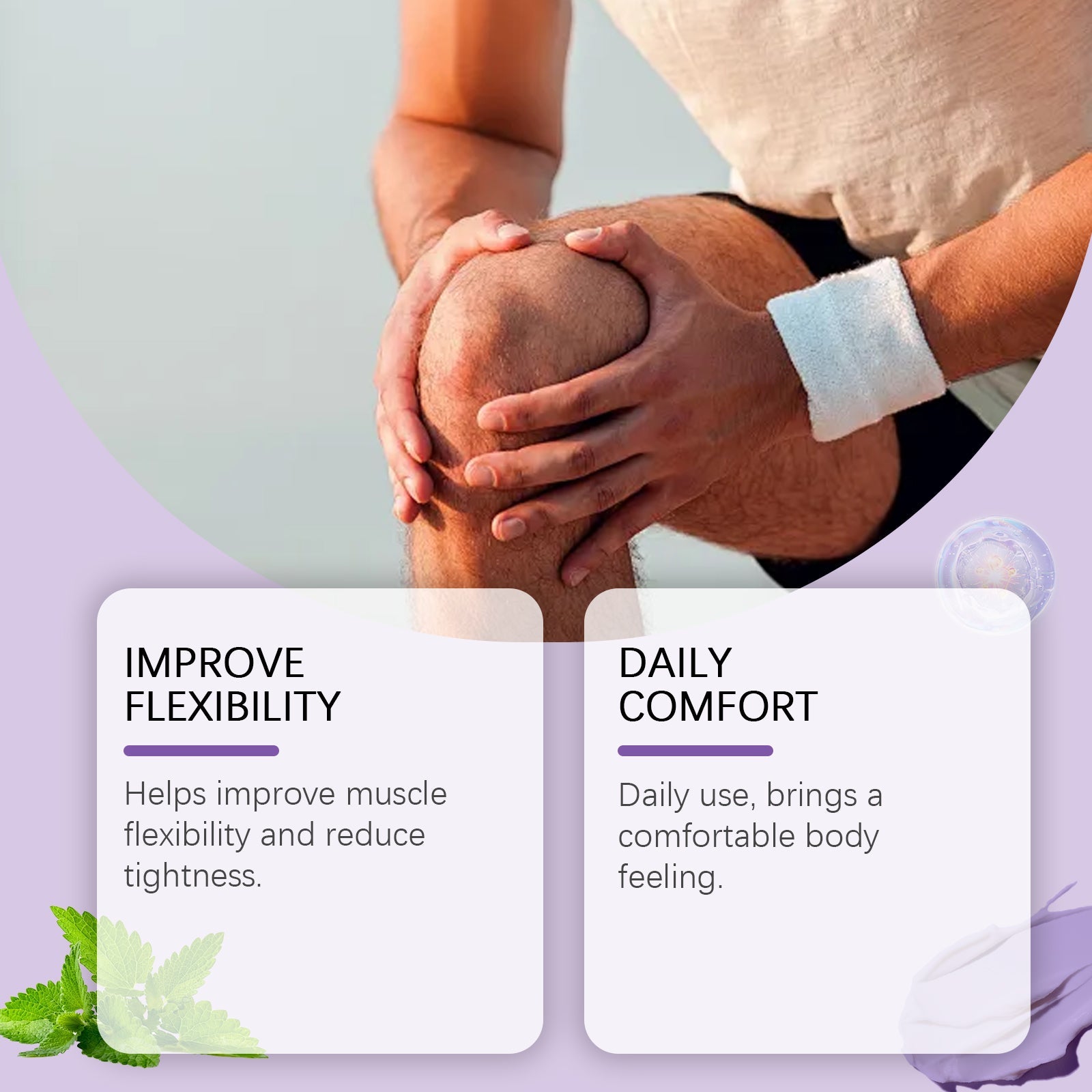 Our joint care cream contains comfrey root, mint leaves and ginger. It can help improve muscle flexibility and reduce tension. The way to use it is simple: clean the skin. Apply appropriate amount of this product evenly to joints. Gently massage to promote absorption. And can be used daily, bring comfortable body feeling.