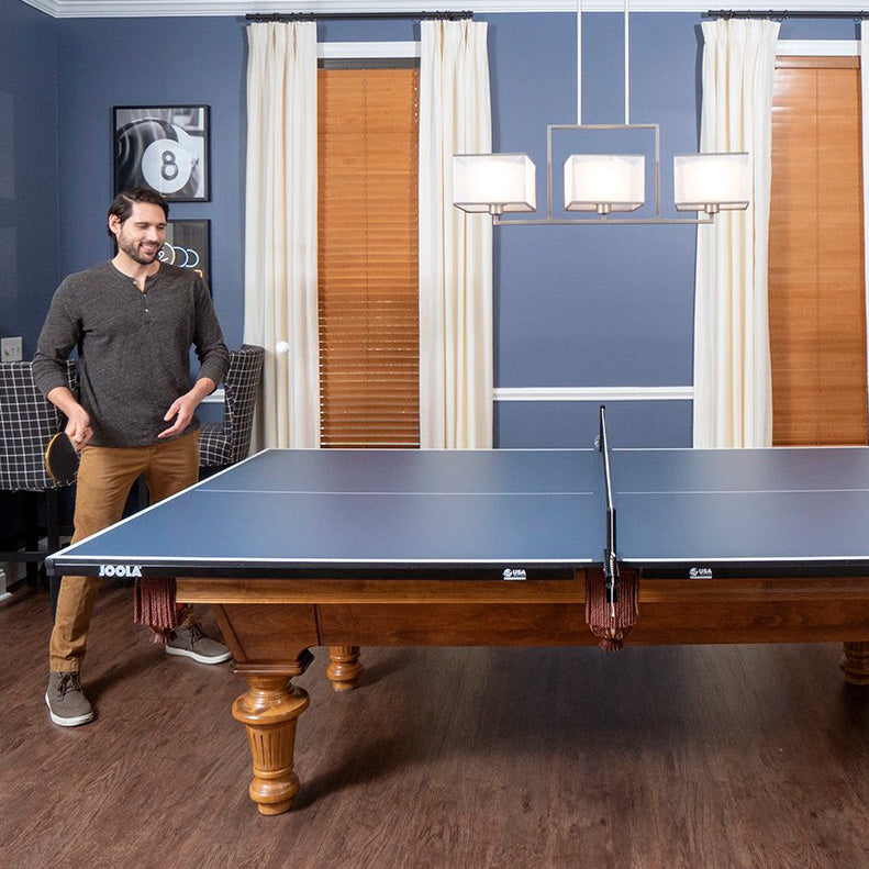 The JOOLA Billiard Table Tennis Conversion Top converts your billiard pool table into a performance table tennis table with a metal apron included. This is the best-selling table from Joola without the undercarriage. This is a regulation size conversion top that functions in two separate halves for easy setup and storage. Multiply your game room and save space by adding two games in one.