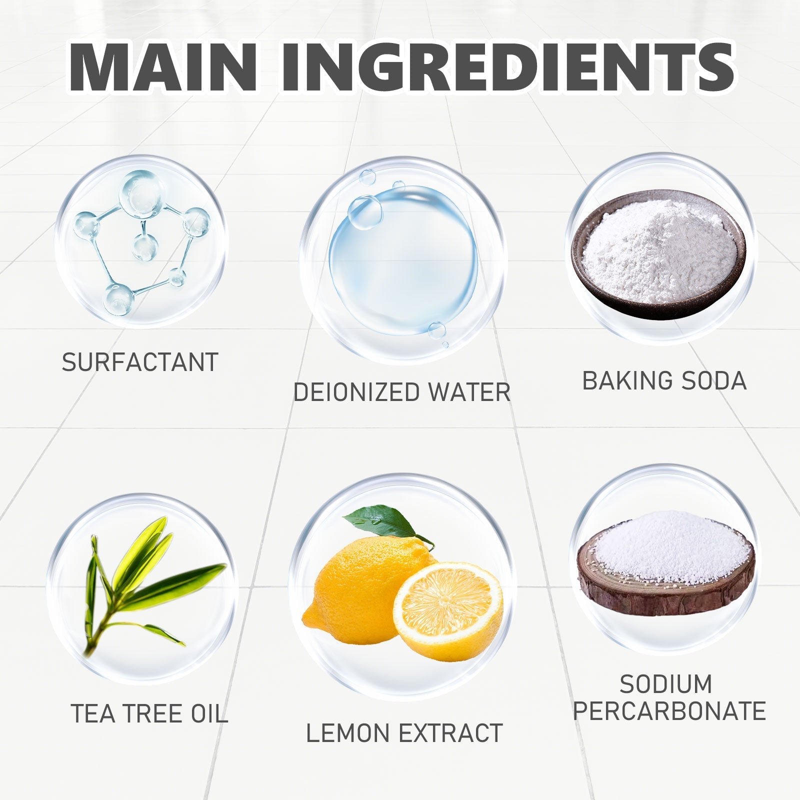Our tile cleaning spray contains deionized water, surfactants, lemon extract. It can reduce the smell of tile, remove stains on tile, use is very safe, and make your home tile look new after use. Its use method is very simple: first spray the spray on the part that needs to be cleaned, then wait 3-5 minutes, let the stain dissolve, and finally wash it with a cloth or brush. After use, it helps to remove stubborn stains from tile, remove bacteria, and leave your tile clean and bright white.