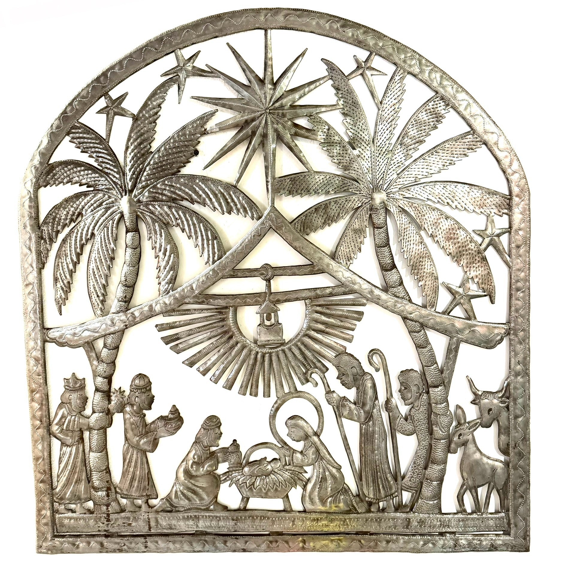 One of the most celebrated Haitian art forms, steel drum art is always a winner! Each piece is hand crafted from recycled 55 gallon drums using only a hammer and a few small tools that resemble railroad spikes. Each piece is a true work of art!