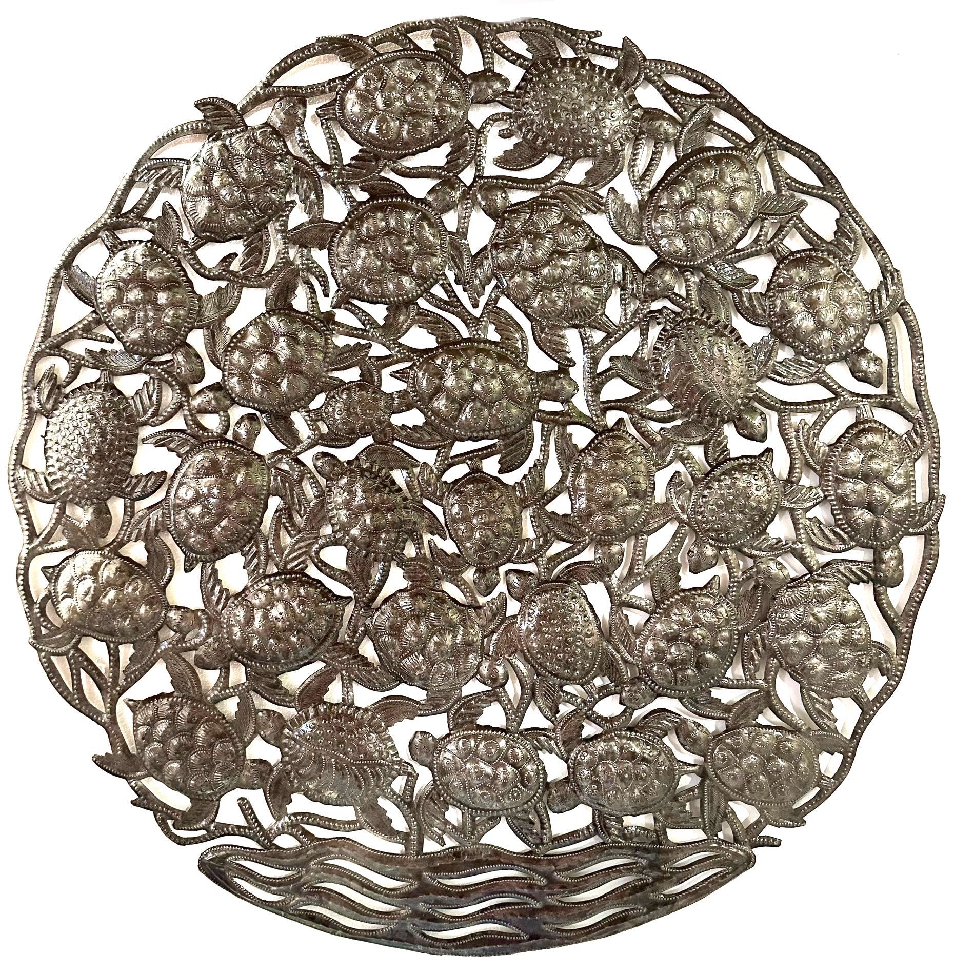 One of the most celebrated Haitian art forms, steel drum art is always a winner! Each piece is hand crafted from recycled 55 gallon drums using only a hammer and a few small tools that resemble railroad spikes. Each piece is a true work of art!