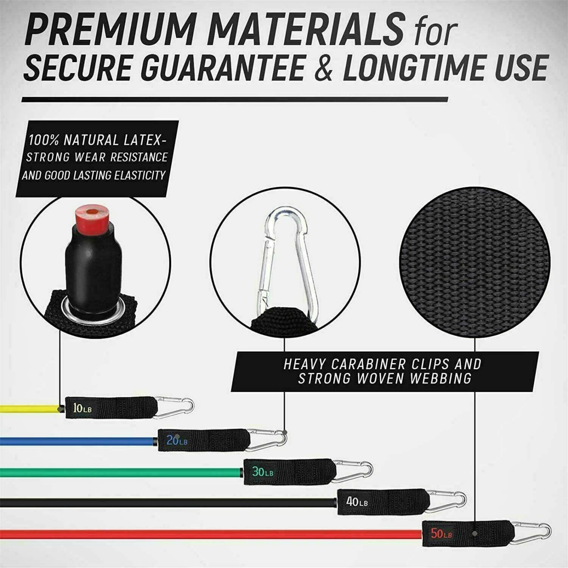 - Quality and Durability: Designed with a high-quality nylon protective sleeve and premium natural latex, these resistance bands provide you with double durability and protection. Highly durable and strong metal buckles and woven webbing to ensure maximum life and safety during use.