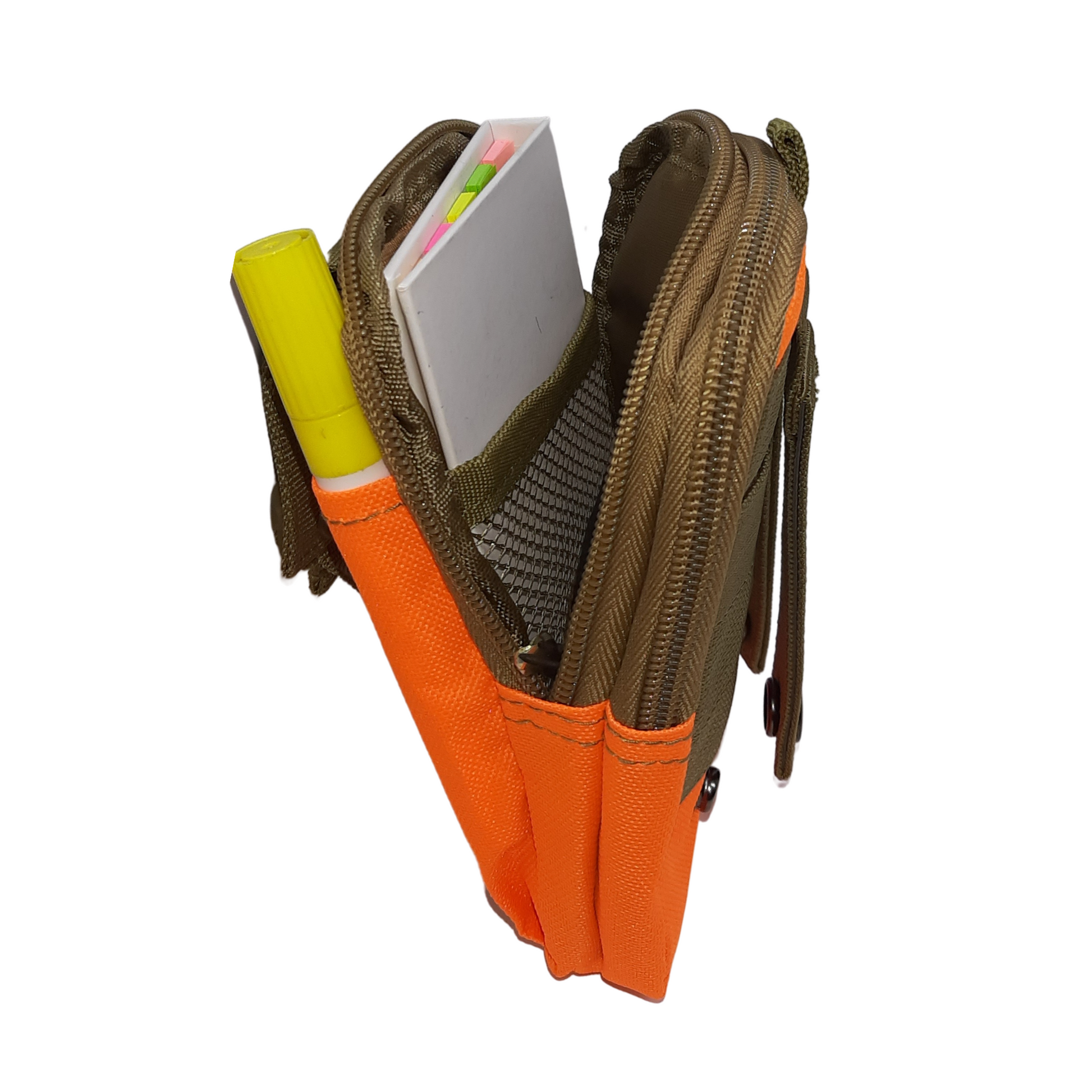 - FASHIONABLE OPTIONS: The waist bag is available in basic black, black with contrast (white) stitching, army tan, olive, grey/olive camo, and electric orange and tan. Use it as a fashion accessory – the orange/tan or black bag is perfect for this – or as camo wear when you’re out hunting.