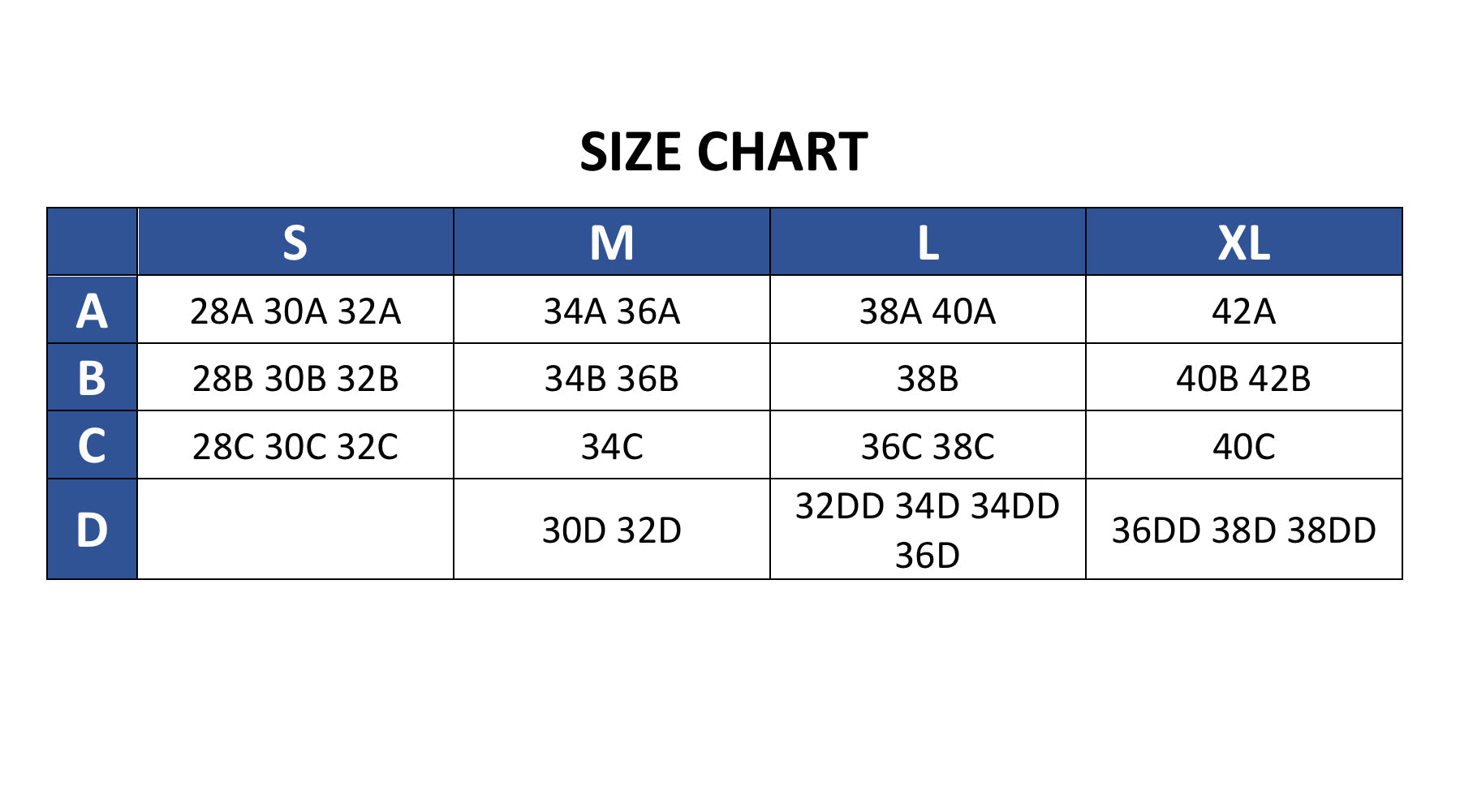 | B | 28B 30B 32B | 34B 36B | 38B | 40B 42B |