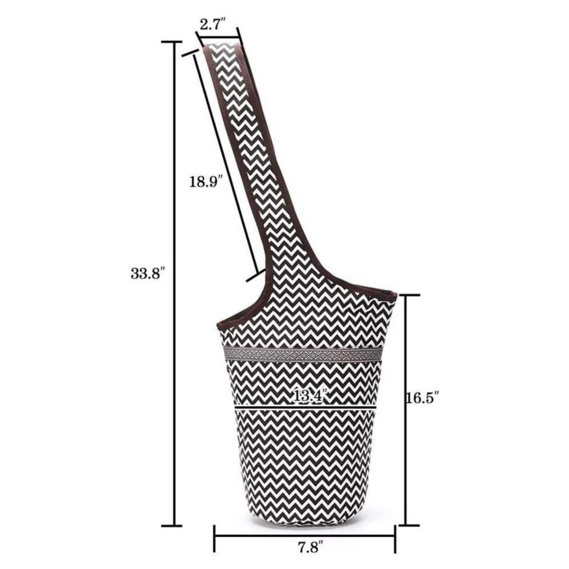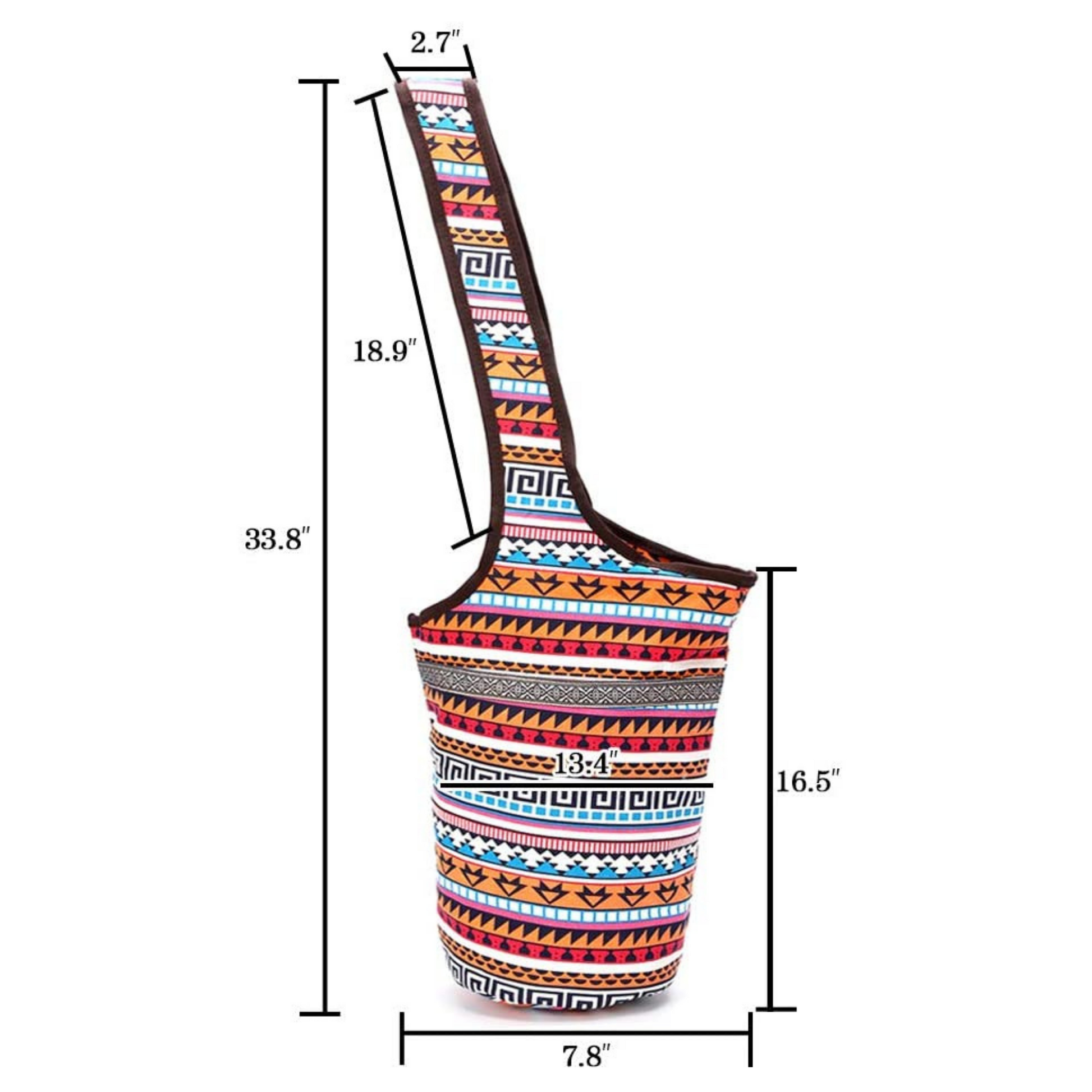 - Yoga Mat Bag Size: 34" length including shoulder strap, 13.6'' width on the top, and 12" width on the bottom.