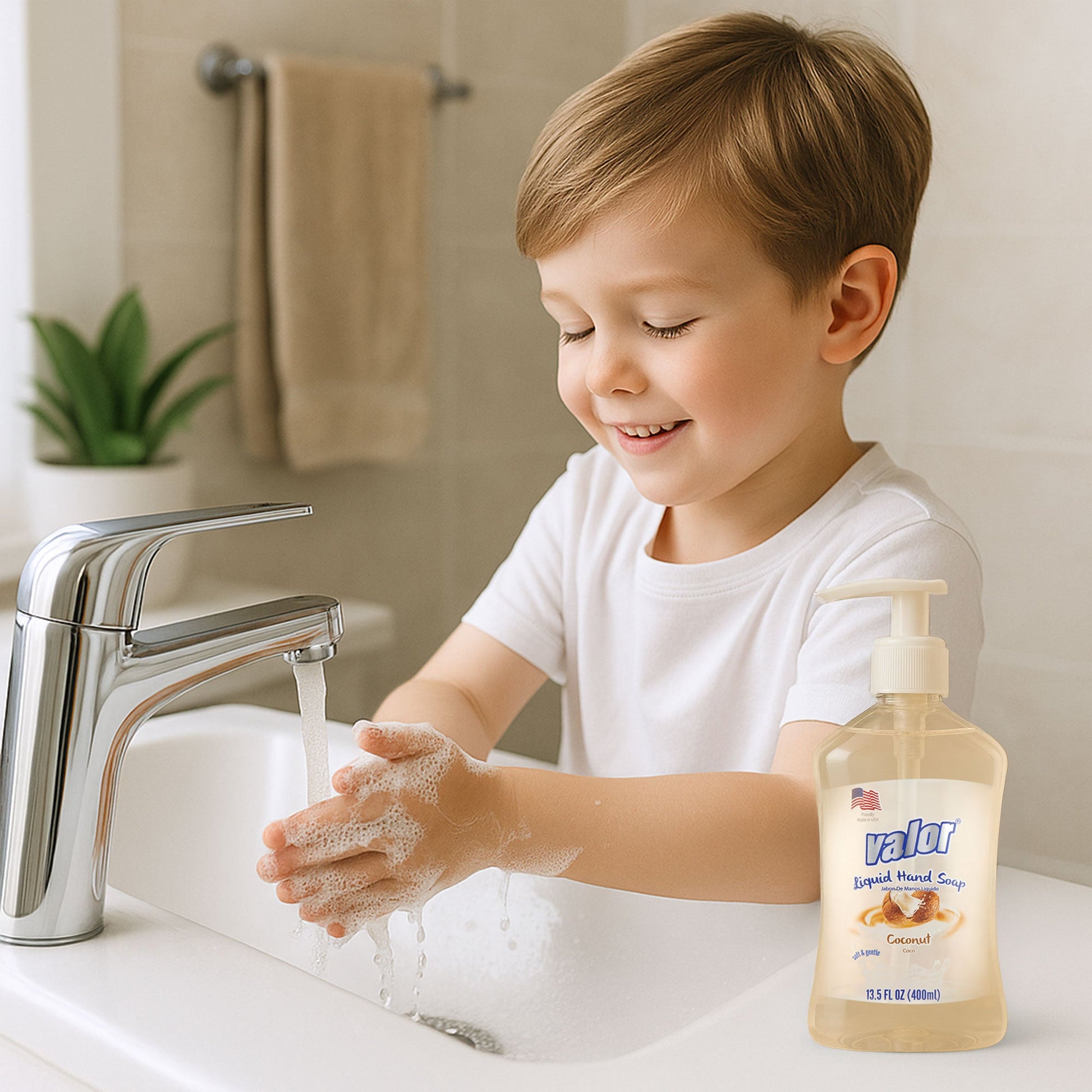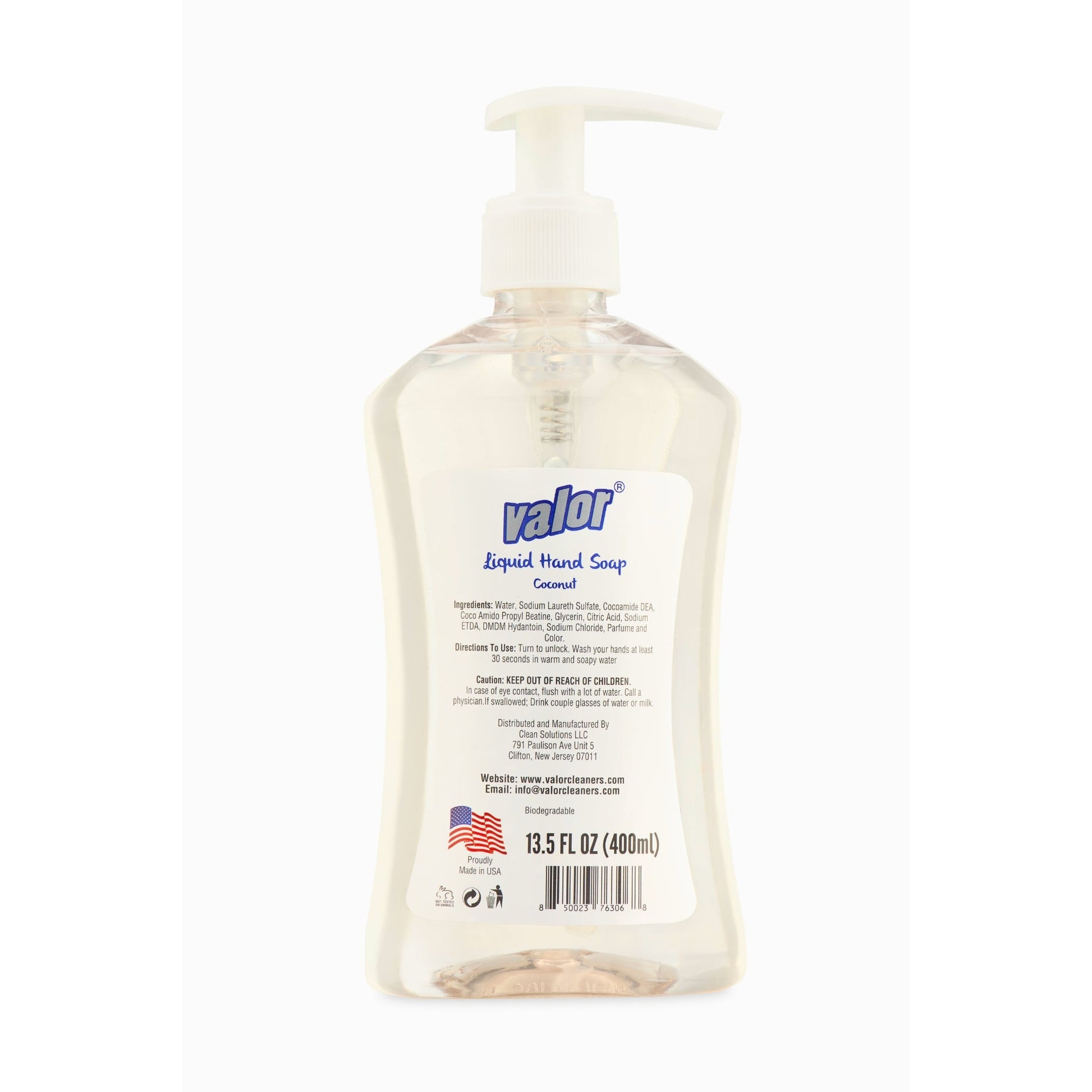 VALOR Liquid Hand Soap Coconut Scent brings a touch of the tropics to your hand washing routine. The creamy formula delivers a deep clean while infusing your hands with the soothing scent of coconut. It's like a mini-vacation every time you wash.