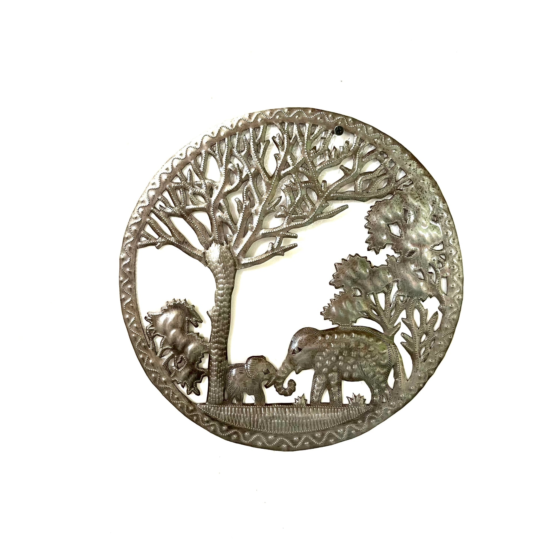 One of the most celebrated Haitian art forms, steel drum art is always a winner! Each piece is hand crafted from recycled 55 gallon drums using only a hammer and a few small tools that resemble railroad spikes. Each piece is a true work of art!