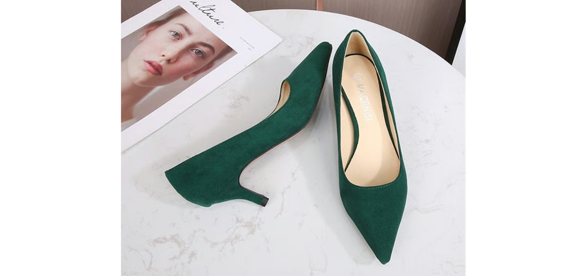 Low Heels Pumps Pointed Toe Kitten Heels Flock Plus Size Shoes
