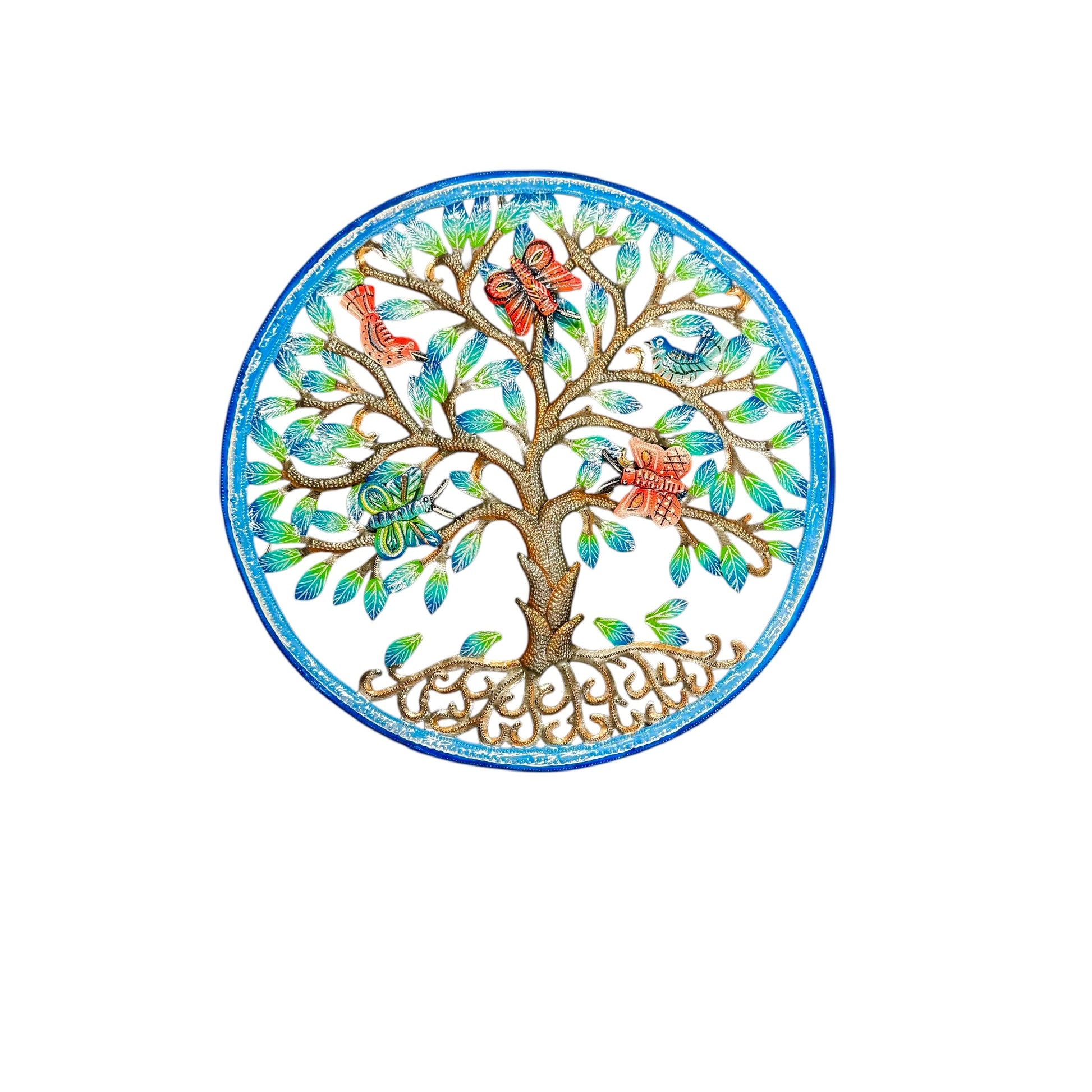 One of the most celebrated Haitian art forms, steel drum art is always a winner! Each piece is hand crafted from recycled 55 gallon drums using only a hammer and a few small tools that resemble railroad spikes. Each piece is a true work of art!