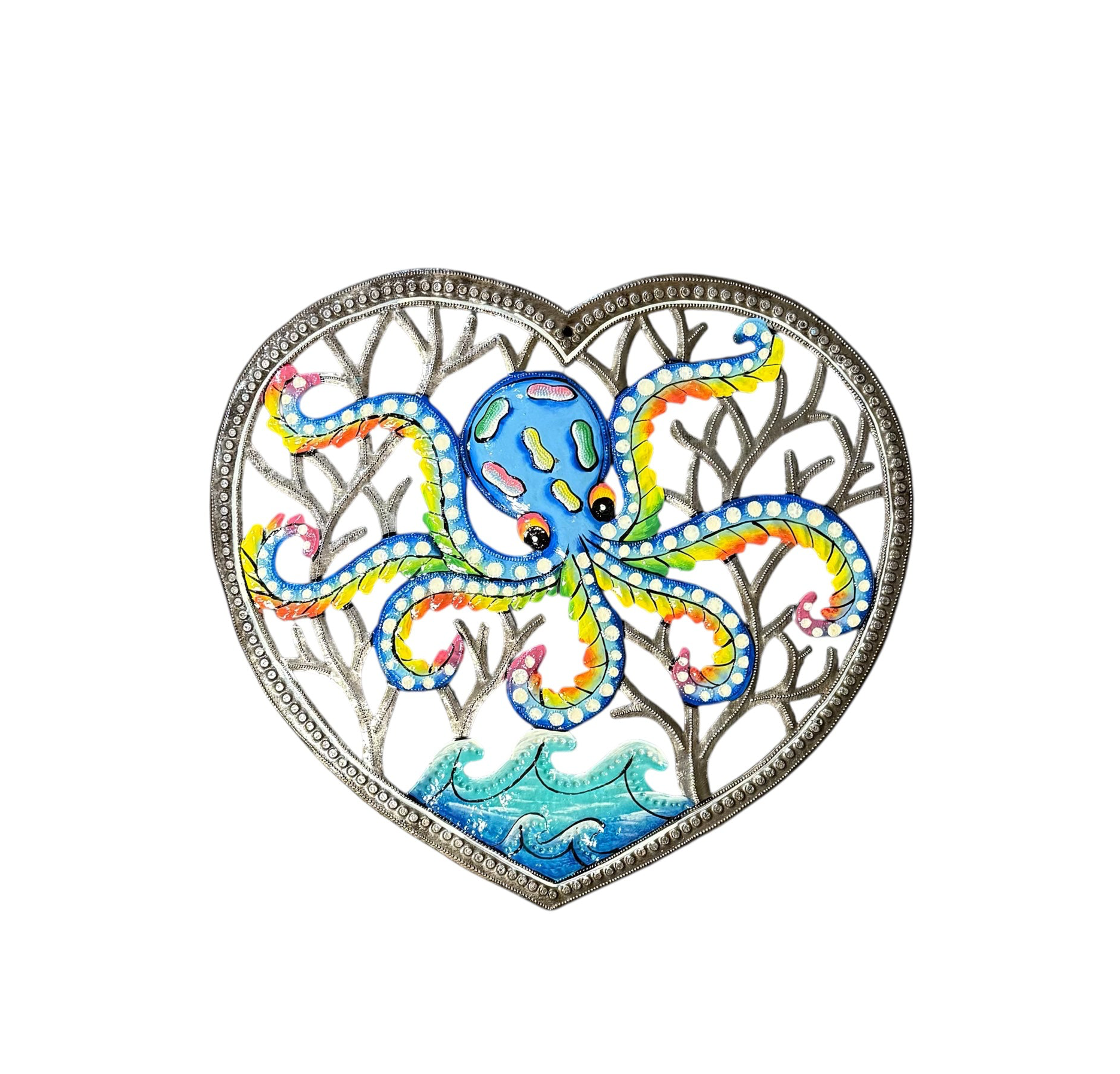 One of the most celebrated Haitian art forms, steel drum art is always a winner! Each piece is hand crafted from recycled 55 gallon drums using only a hammer and a few small tools that resemble railroad spikes. Each piece is a true work of art!