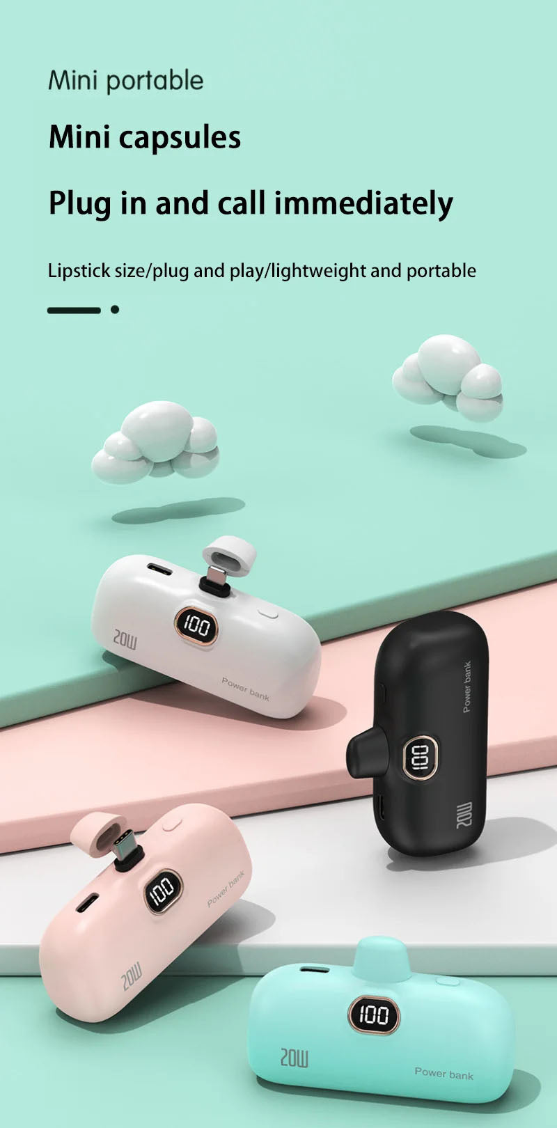 Mini Power Bank 2000/5000mAh Built Cable Portable Mobile Charger Fast Charger Spare Battery Capsule Power bank For iPhone Type-C