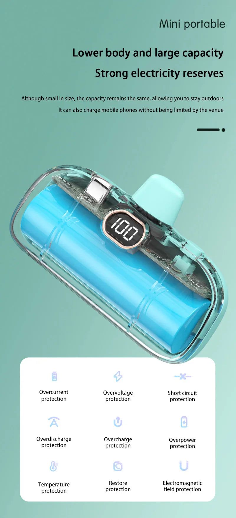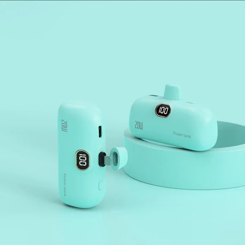 - 5000mAh Emergency Backup Charger Equipped with a 5000mAh battery, it can provide approximately one to one and a half hours of charging time for iPhone, making it an ideal companion for short trips and outdoor activities. This mobile power bank has built-in wireless charging function and PD 20W technology, with faster charging speed and no need for cables.