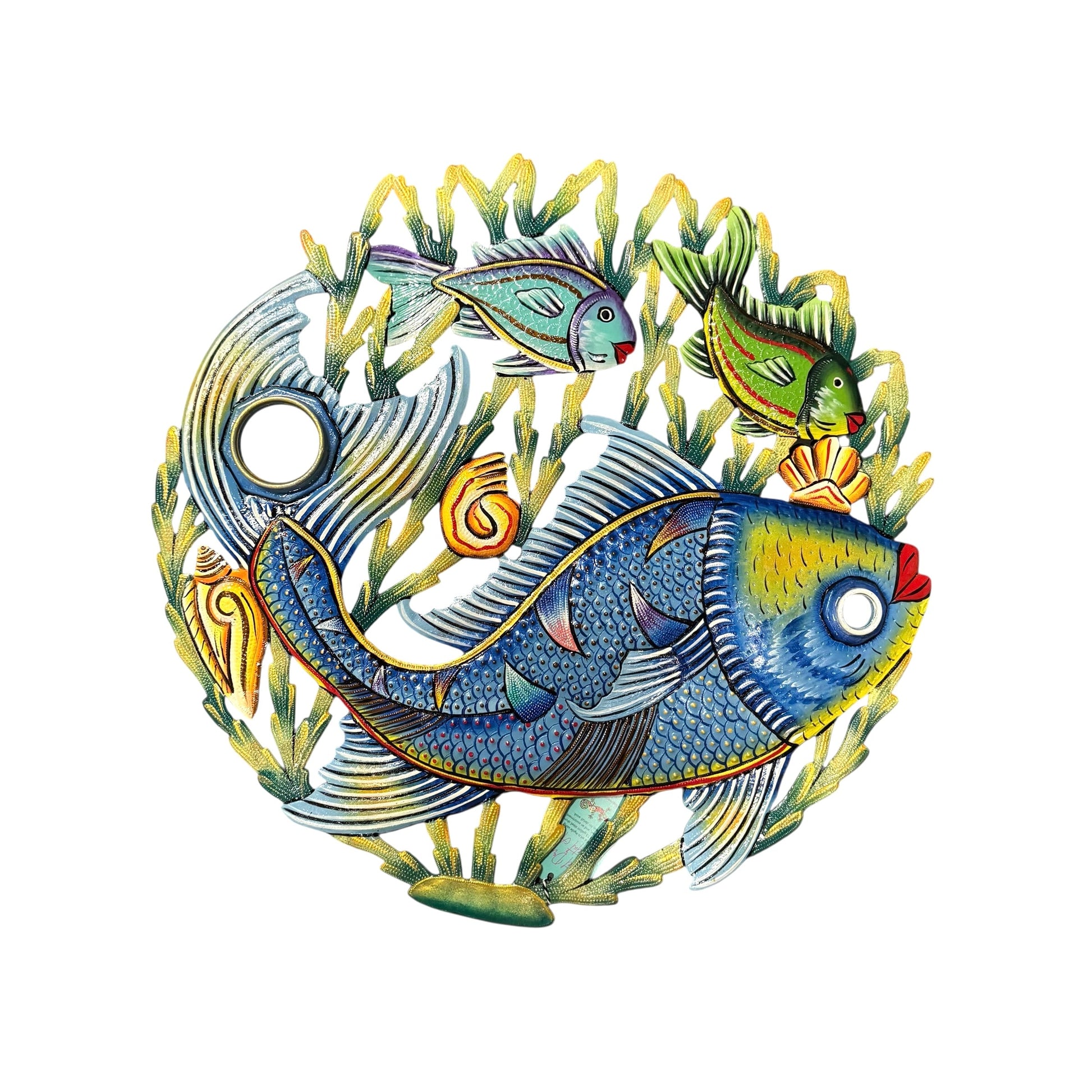 One of the most celebrated Haitian art forms, steel drum art is always a winner! Each piece is hand crafted from recycled 55 gallon drums using only a hammer and a few small tools that resemble railroad spikes. Each piece is a true work of art!