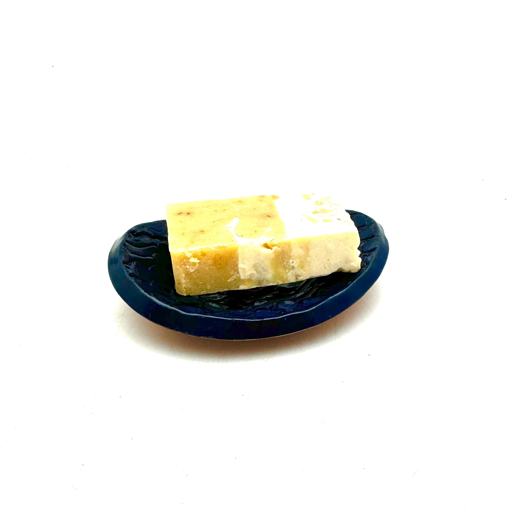 This oval ceramic soap dish is handmade using authentic Haitian clay, imprinted with a design, and inlayed with a top glaze to hold a block of soap. Hand-washing is recommended to prolong the life of your purchase.