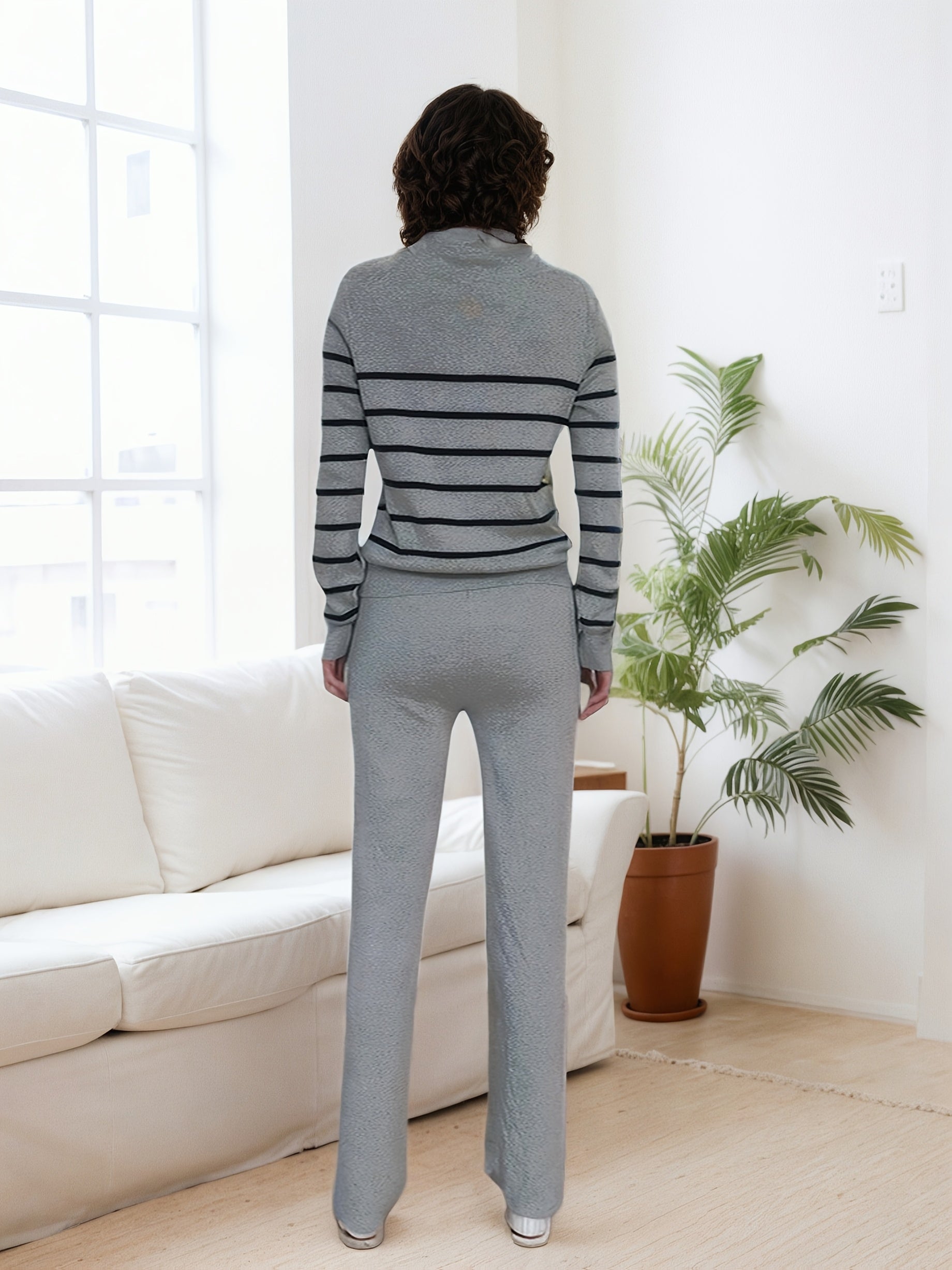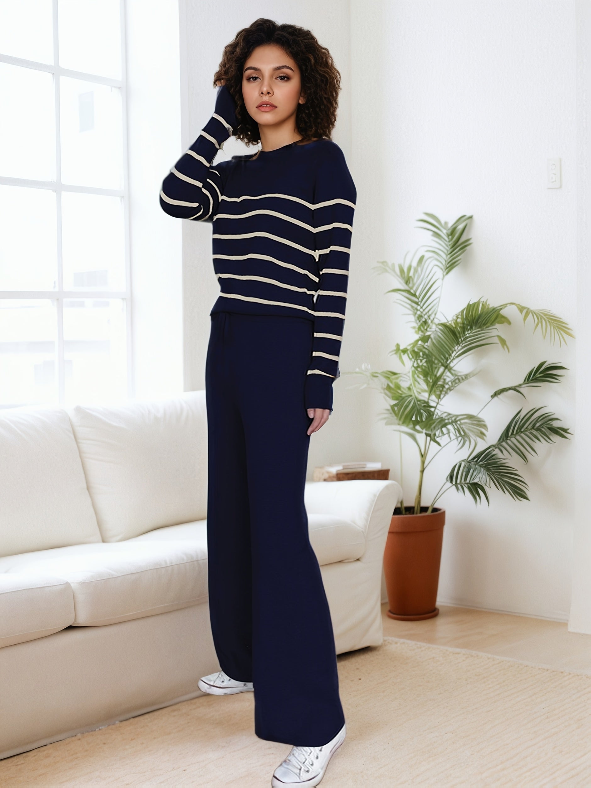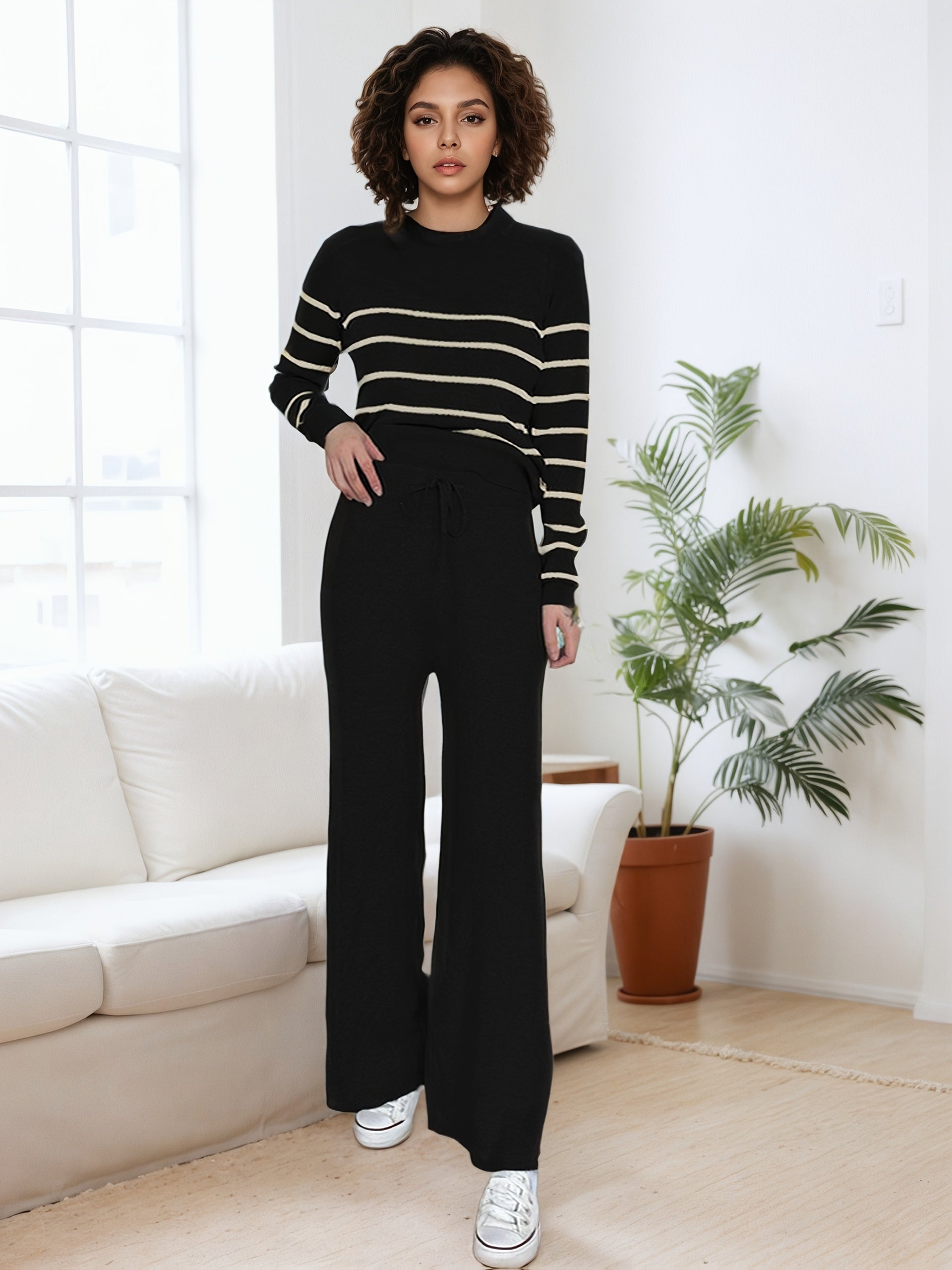[🔥 Major Style] Forget endlessly scrolling through outfit ideas because this striped knit set is a complete look in itself! The stylish striped top and flowy wide-leg pants create a chic and effortless outfit that's perfect for any occasion. The tailored fit flatters your figure, while the oversized design keeps things comfy. This set is guaranteed to turn heads. Who does want to find their style right?
