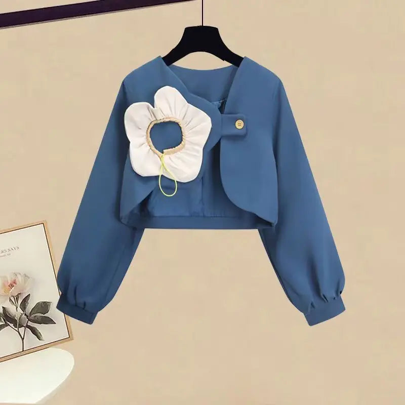 This versatile outfit is available in a variety of sizes, ensuring a perfect fit for everyone. Whether you're looking for a casual day out or a more polished evening look, this set has you covered. Choose from the classic blue coat or the soft apricot suspender skirt, both of which can be styled effortlessly for any occasion.