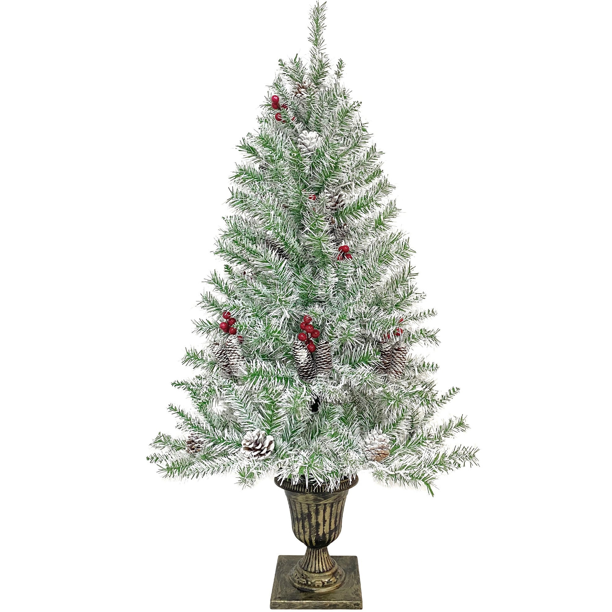 Pre-lit Xmas Tree Artificial Christmas 4-Piece Set,Garland, Wreath and Set of 2 Entrance Trees X-mas