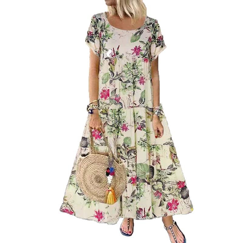 Experience the perfect blend of vintage charm and modern style with our Stand-alone Retro Cotton and Linen Floral Print Short-sleeved Round Neck Dress. This dress is designed for those who appreciate the beauty of floral patterns and the comfort of high-quality fabrics.