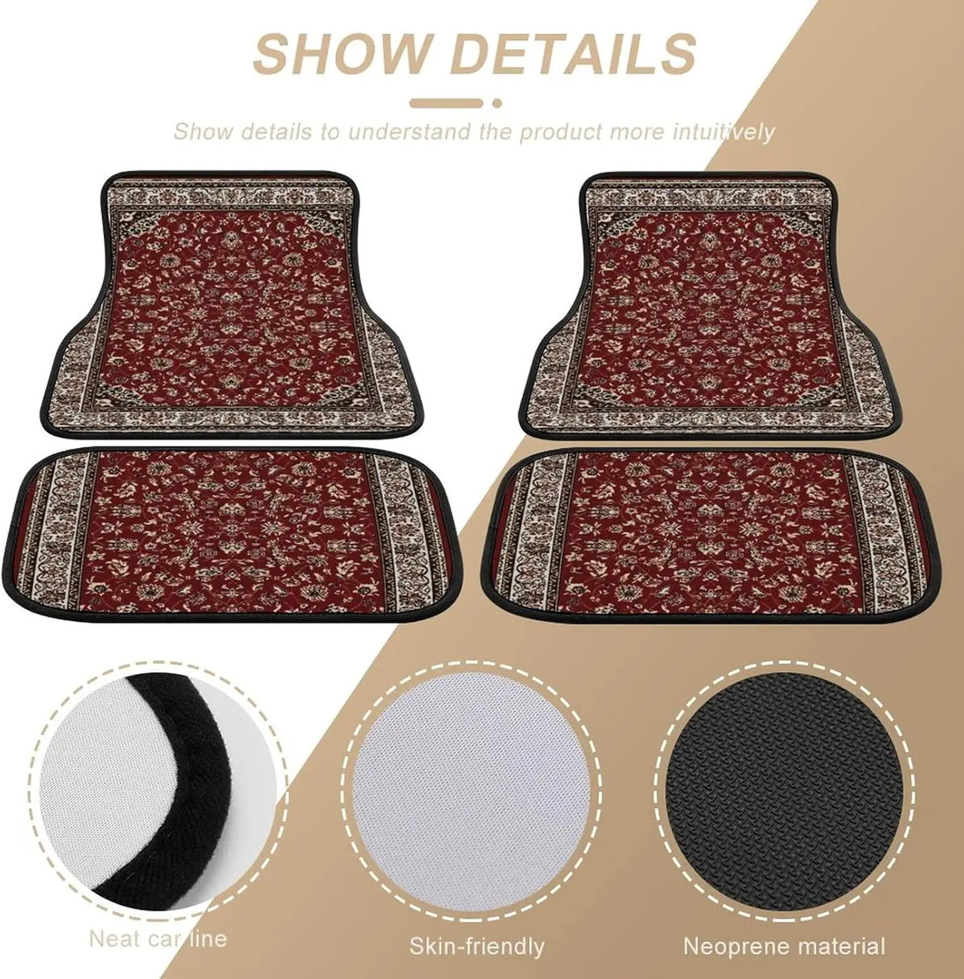 Rust Red Paisley Rug 4 Pieces Car Floor Mats Car Carpets Full Sets Universal Fit for SUV, Vans, Sedans, Trucks All Weather