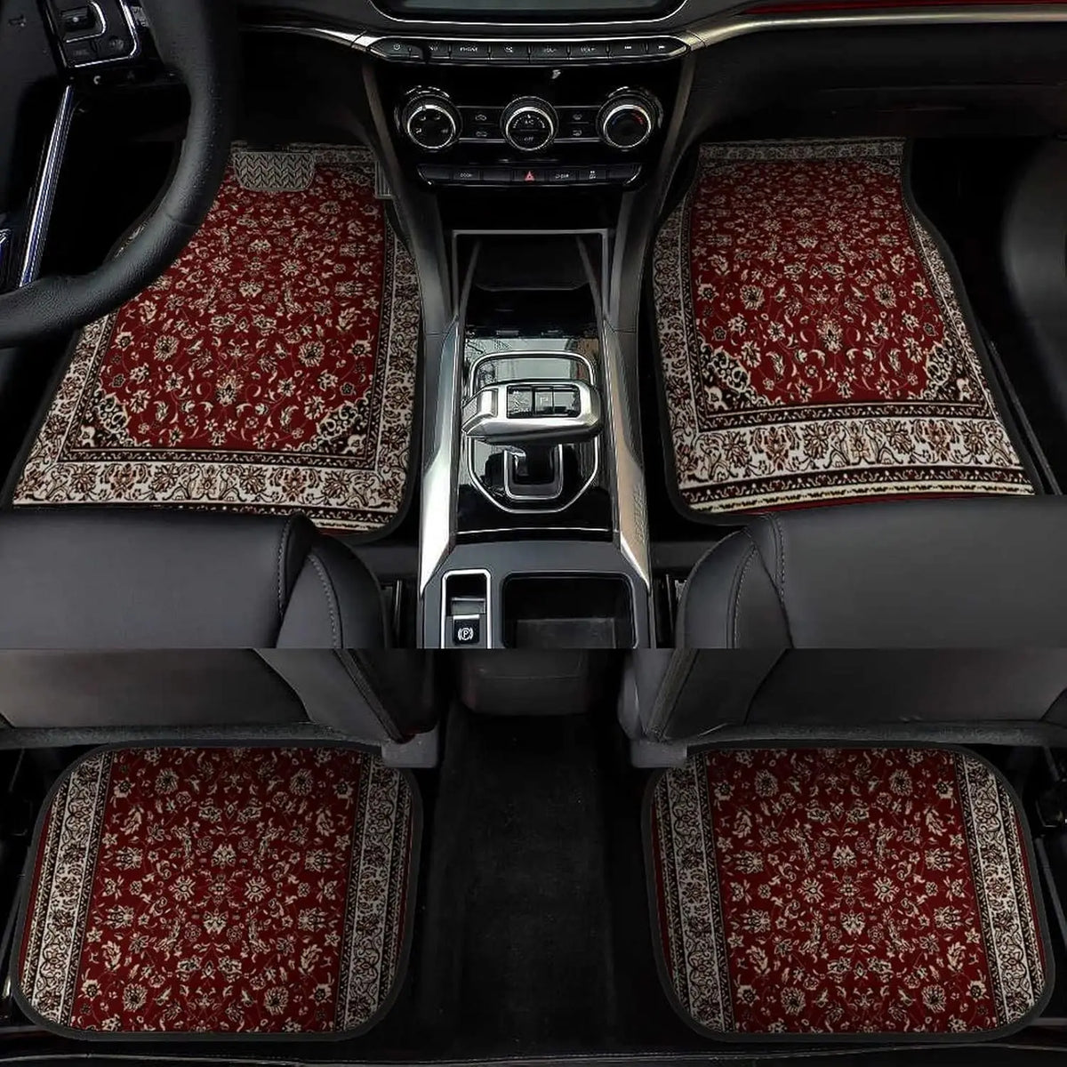 Rust Red Paisley Rug 4 Pieces Car Floor Mats Car Carpets Full Sets Universal Fit for SUV, Vans, Sedans, Trucks All Weather - 1
