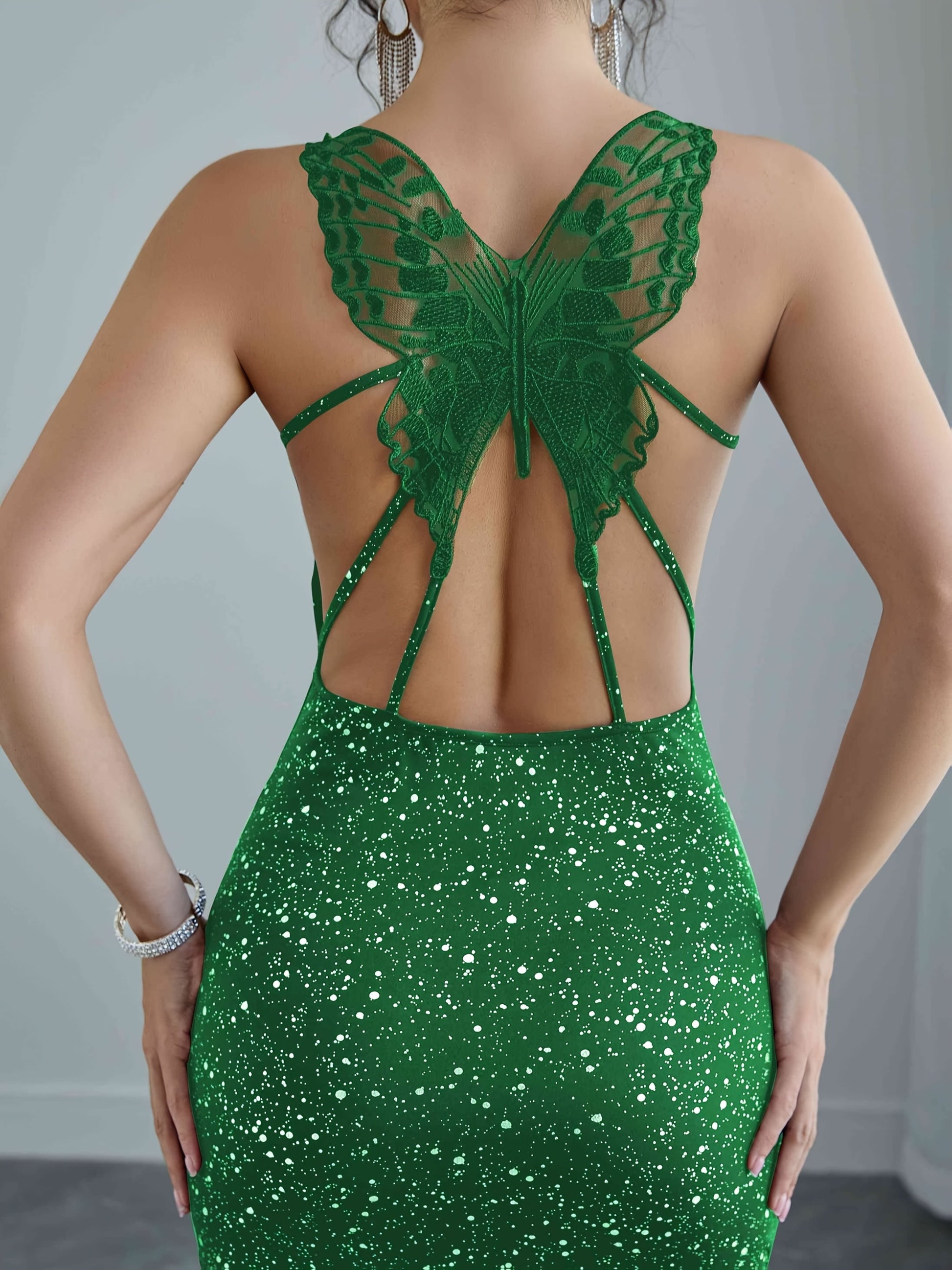Okay, bestie, get ready to slay in this Elegant Green Sequin Butterfly Backless Gown. This dress isn't just a look; it's a whole vibe. Imagine shimmering under the disco lights, turning heads everywhere you go. This bodycon masterpiece is designed to hug your curves in all the right places, giving you that sleek, snatched silhouette we all crave. The glittering sequins catch the light with every move, ensuring you're the main character wherever you are. No cap, this is the ultimate party dress that'll have everyone asking, "Where did you get that?!" This dress is seriously fire and its long length brings elegance with a hint of spice.