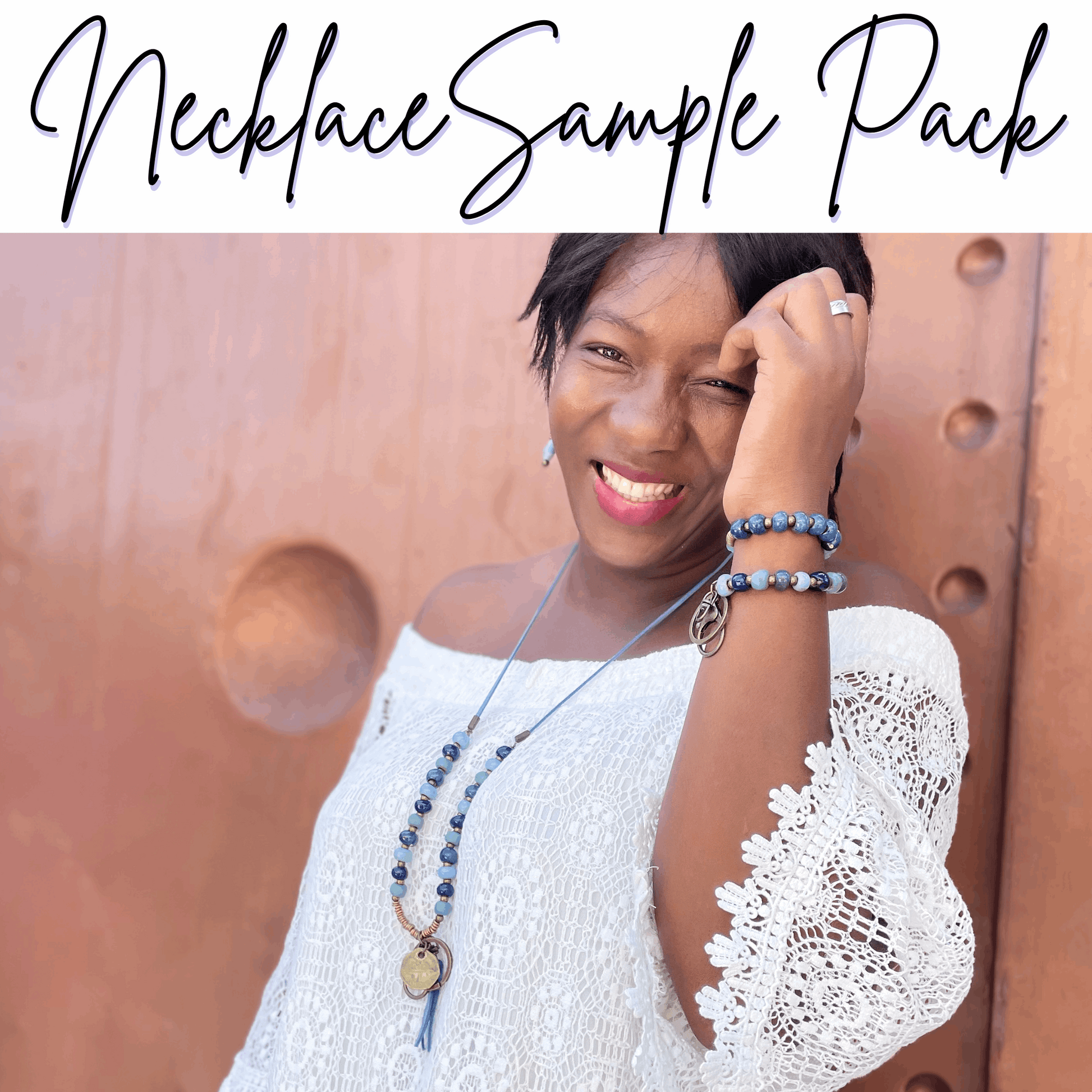 Each sample pack is different and may include ceramic necklaces, cereal box bead necklaces, or any other kind of handmade necklace that Papillon makes.