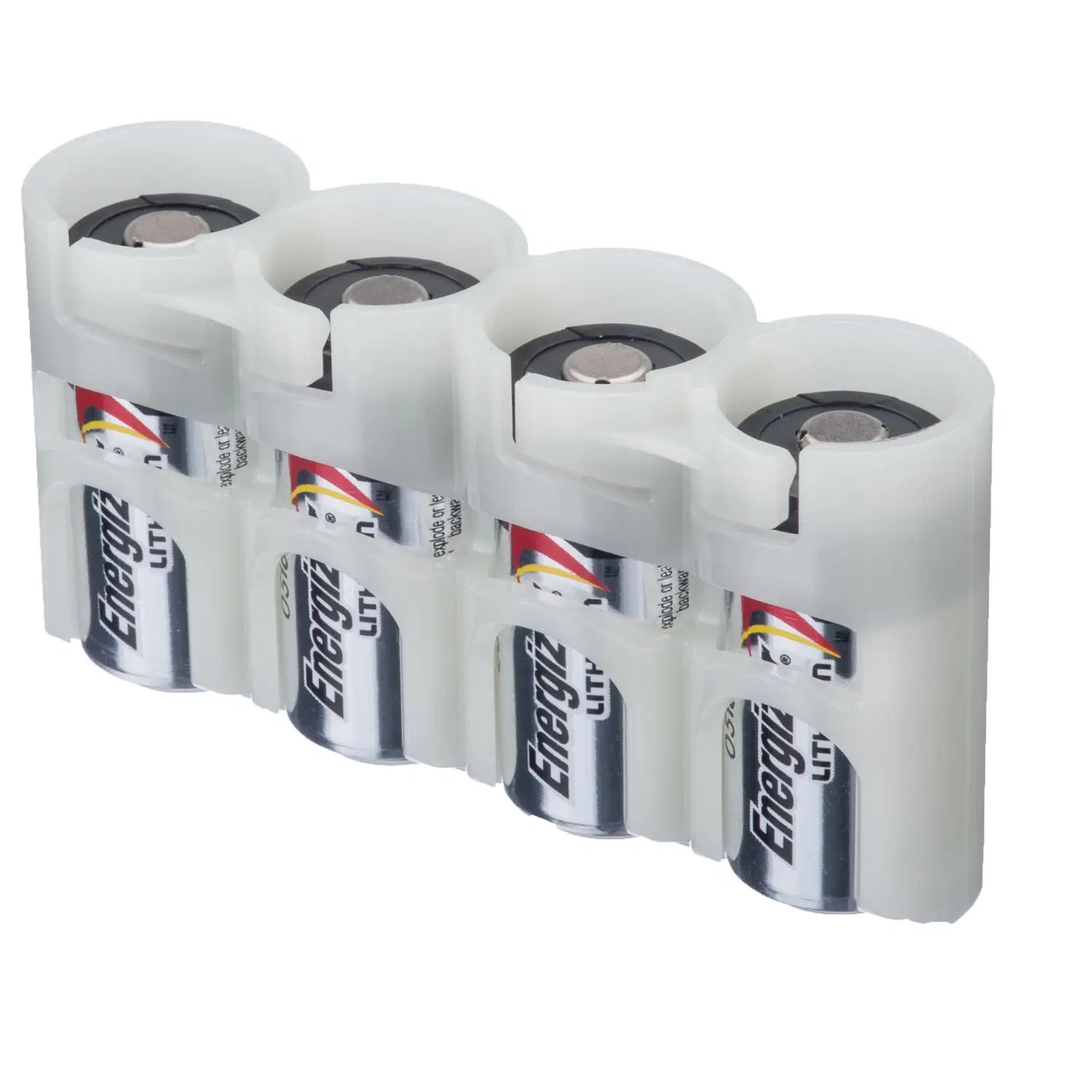 – Holds 4 CR123 batteries. Batteries are not included.– Moonshine caddies glow in the dark for up to 8 hours if exposed to 30 minutes of light.