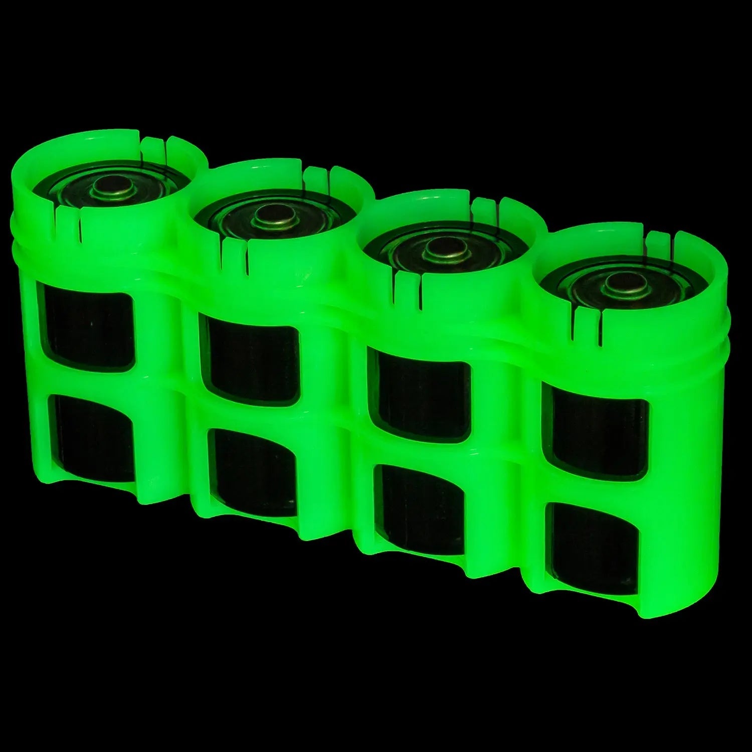 – Holds 4 D batteries. Batteries are not included.– Moonshine caddies glow in the dark for up to 8 hours if exposed to 30 minutes of light.