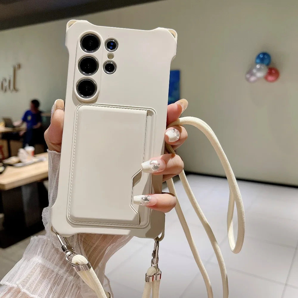 This isn't just a phone case; it's a whole lifestyle upgrade. Forget bulky bags or pockets bursting at the seams. This lanyard card holder case is all about that minimalist chic, keeping your most important cards and your phone right where you need them, always. It’s the low-key flex that screams convenience and style. Imagine breezing through your day, phone secure, cards accessible, and looking fire doing it. This is the drip you didn't know you needed, but now you absolutely cannot live without. It's the whole package, no cap.