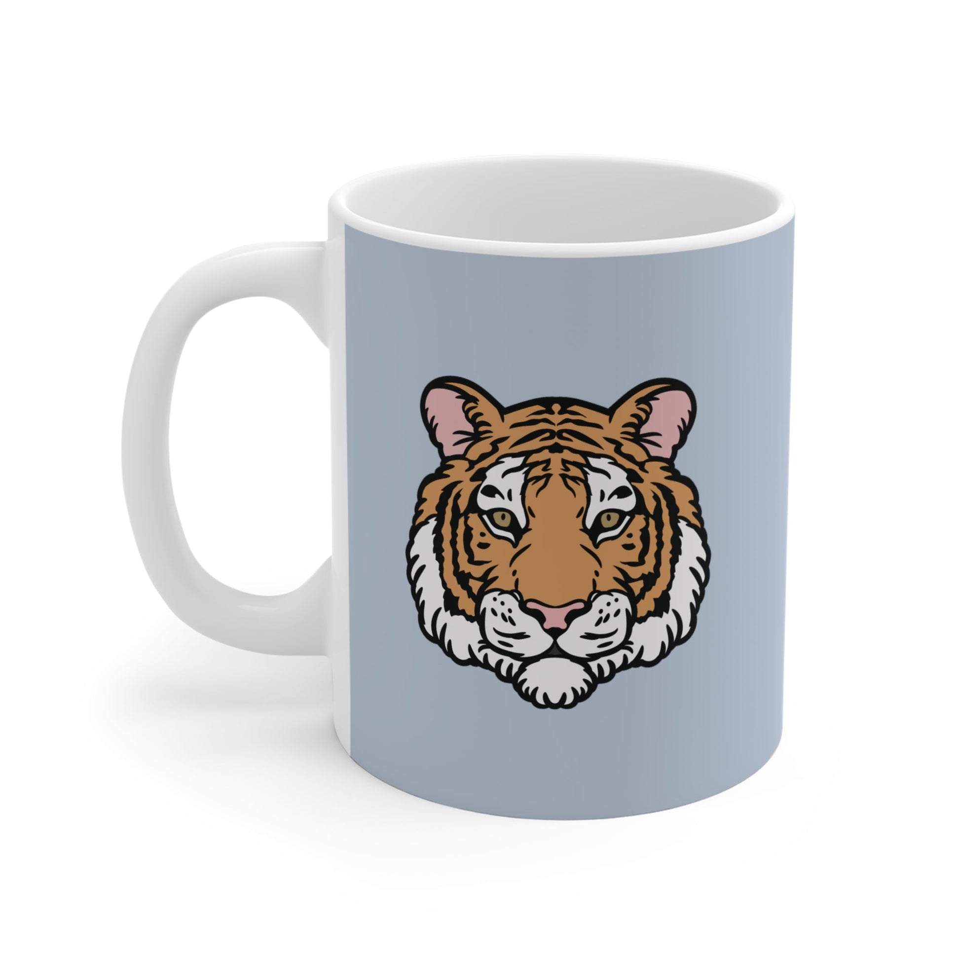 Tiger Logo Blue Mug - the perfect companion for your morning cup of coffee, tea or hot chocolate. Crafted from high-quality, durable ceramic, this classic white mug is designed to withstand daily use and is sure to become your go-to mug for all your favorite hot beverages. With its sleek and stylish design, this mug is perfect for both home and office use.