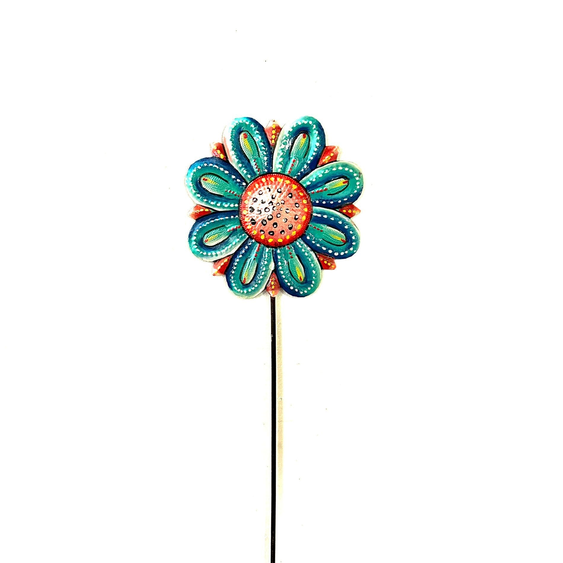 Turquoise And Red Flower Garden Stake