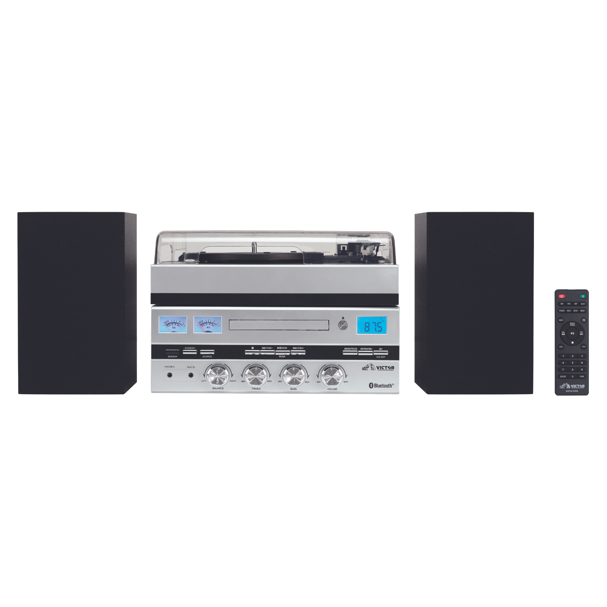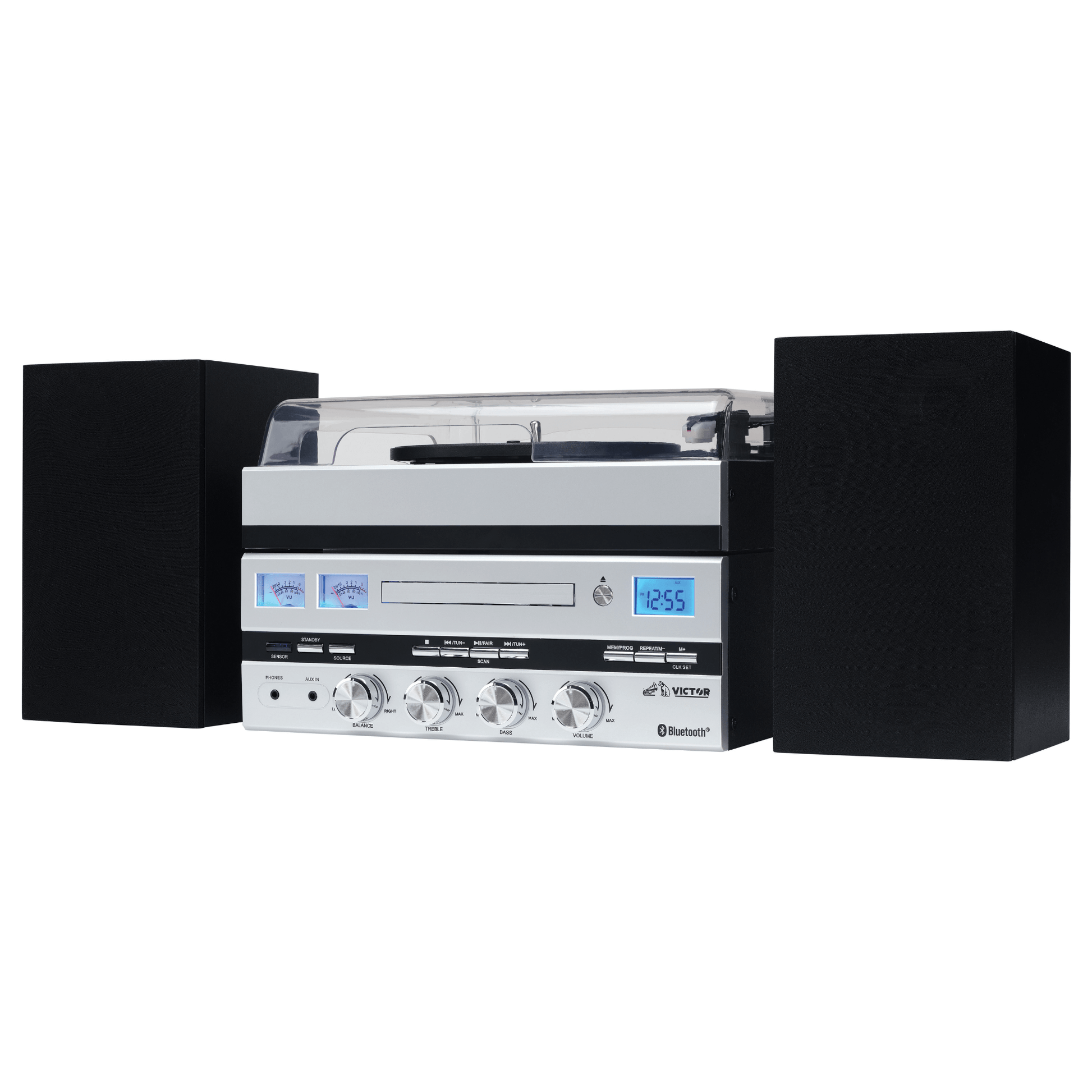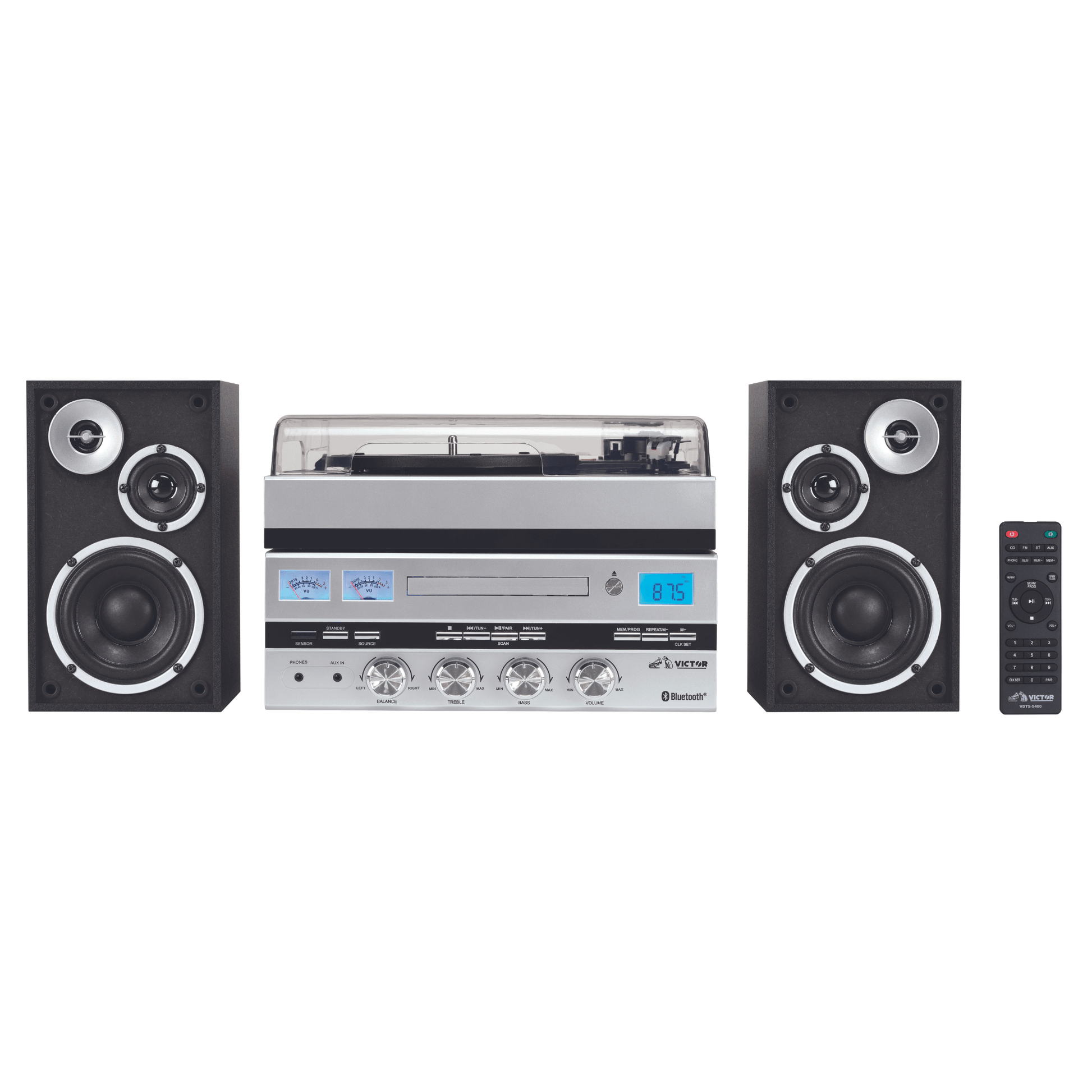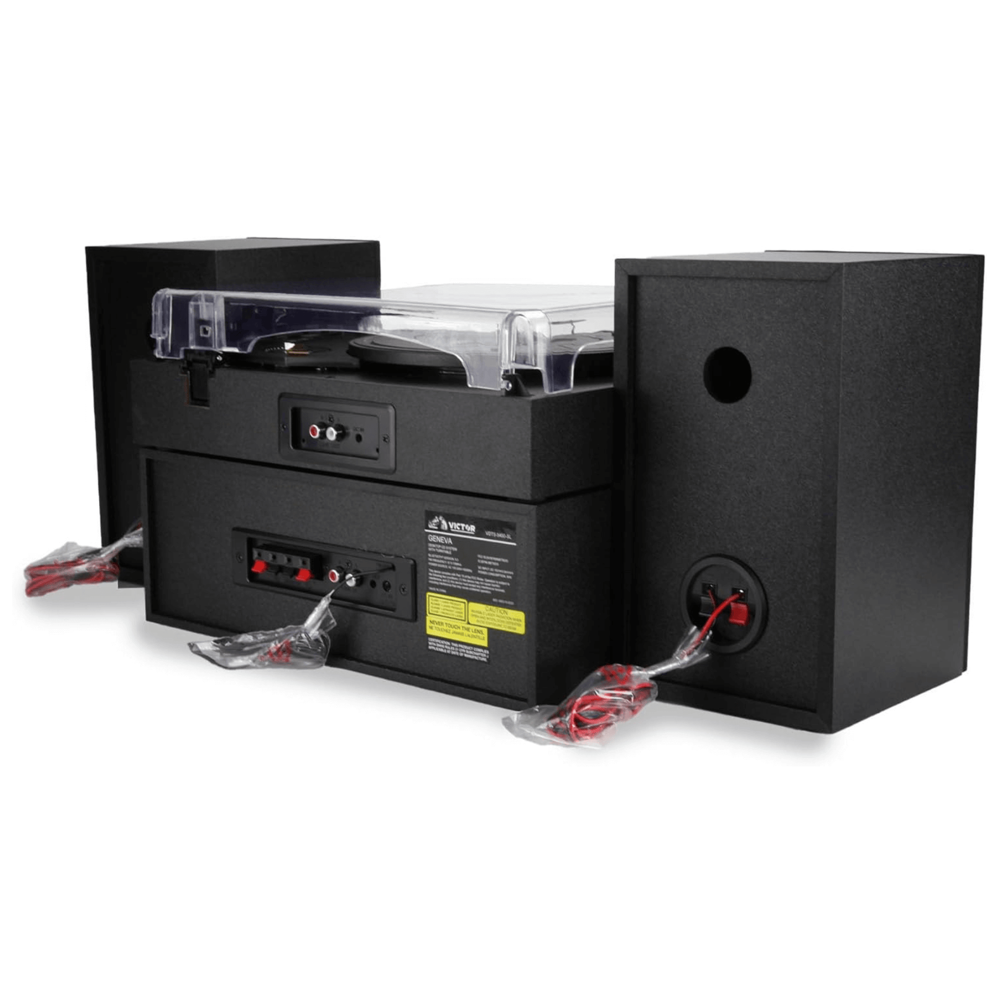 The Victor Geneva Stereo System delivers powerful music playback with a retro style reminiscent of past Stereo Systems. Packed with features including a record player, CD and Bluetooth Playback, 25X2 Watts of Power, Fully Functioning VU Meters, and detached Speakers with removable covers, the Geneva definitely delivers!
