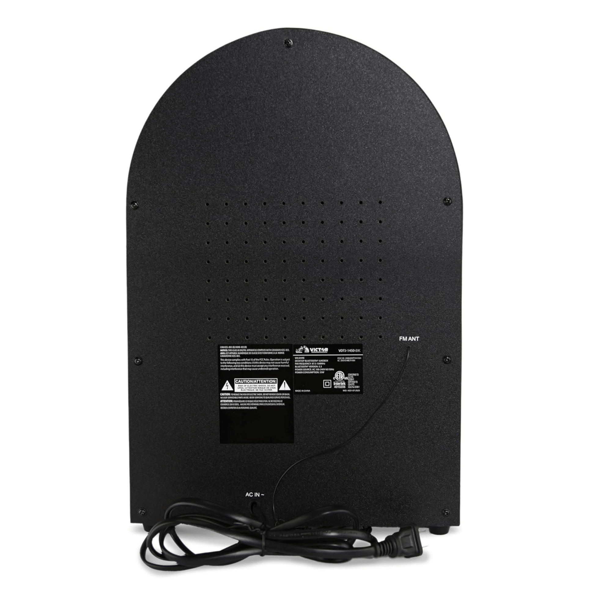 Victor Wilshire Desktop Bluetooth Jukebox with Multicolor LED Lighting features a Classic Jukebox Design all in a convenient size. The FM Radio is ready to play your favorite Music. Bluetooth lets you stream music from your Smart Device through the Wilshire’s built-in speaker. The Multicolor LED Lighting provides an eye-catching look.