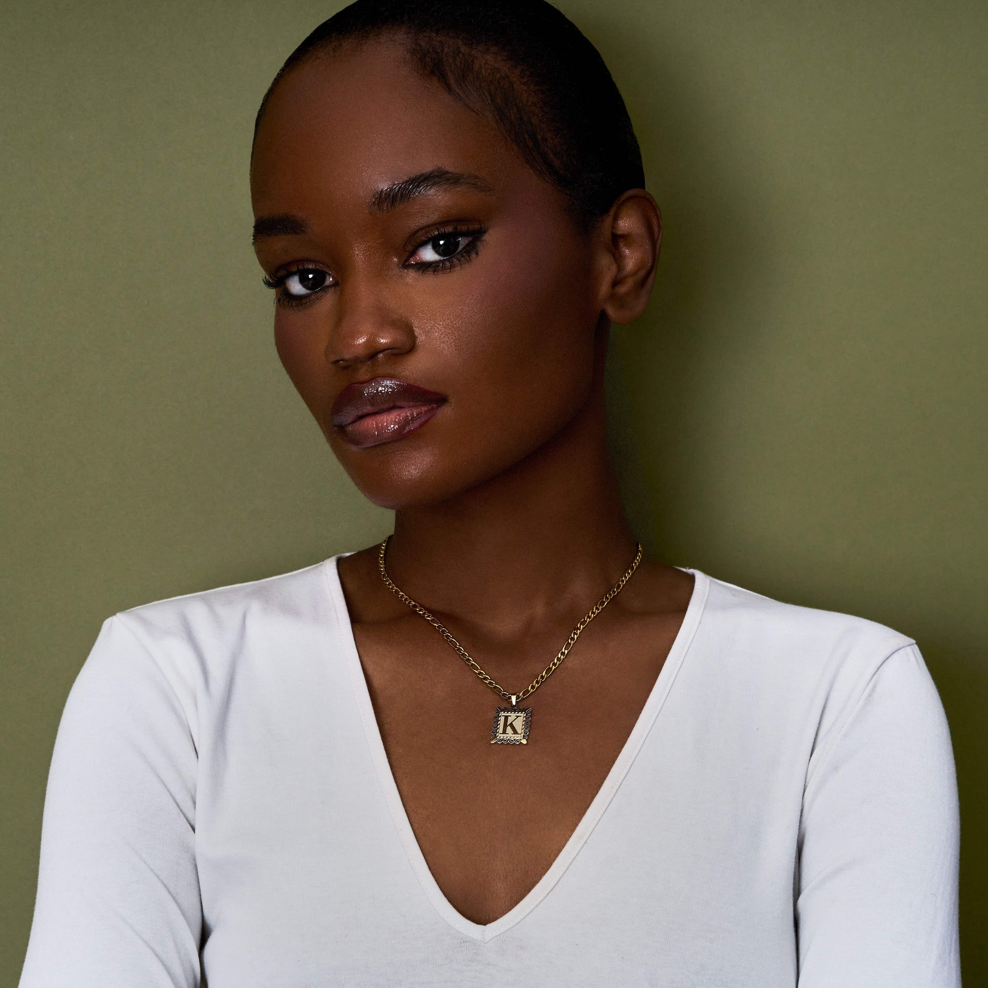 The Vintage Initial Pendant offers timeless charm. It features your chosen initial in an ornate, antique-inspired frame. High-quality and polished, it’s perfect for layering or as a classic keepsake. Customizable with:Letters Chain type: Figaro Chain Charm width: 0.8"x 0.7" Closure: Lobster clasp Pendant Material: Stainless Steel Metal Selection: 14k Gold over Stainless Steel Stainless Steel