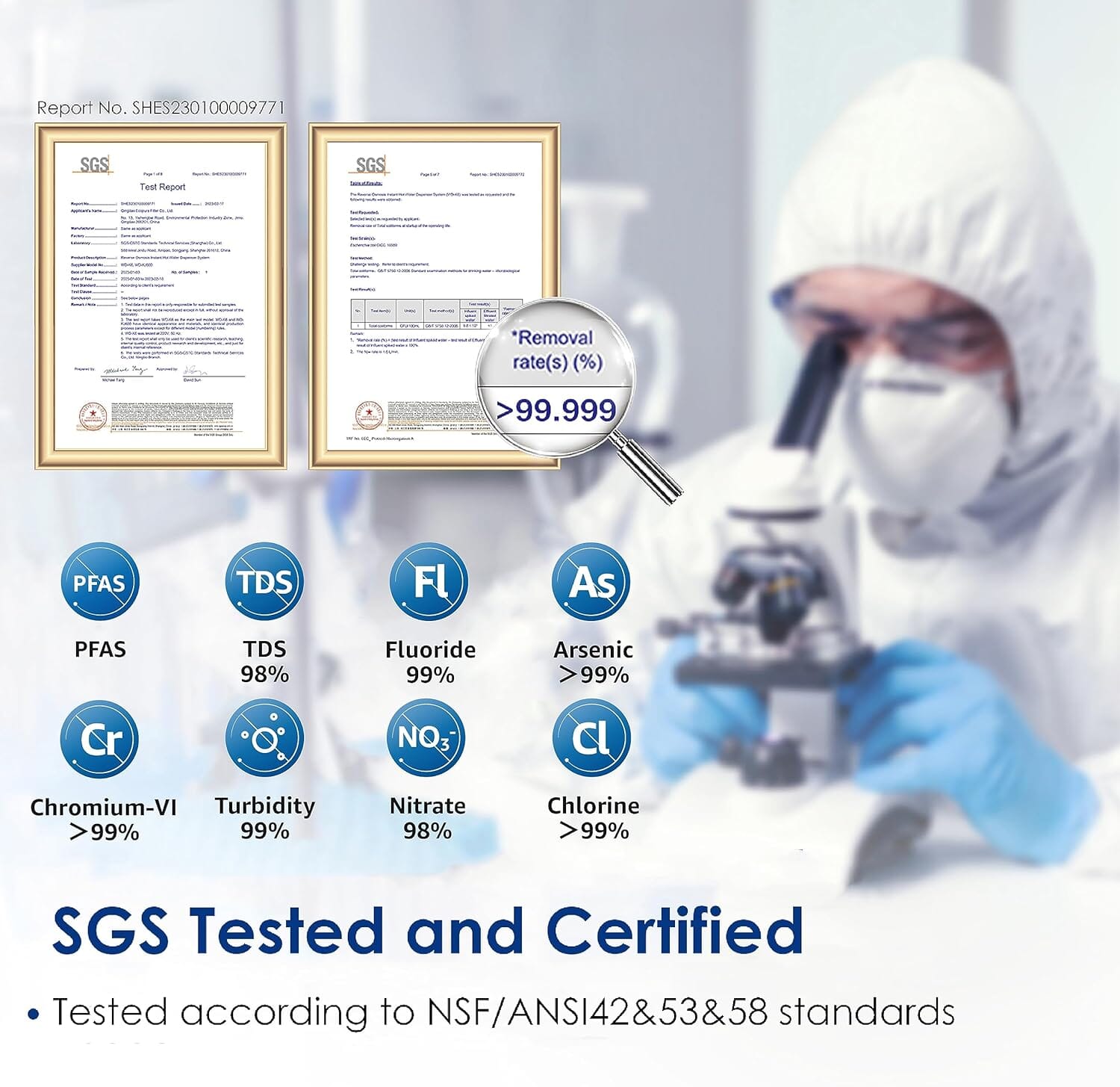 Reduces Fluoride, Sediment, Rust, TDS, Chromium, PFOA,