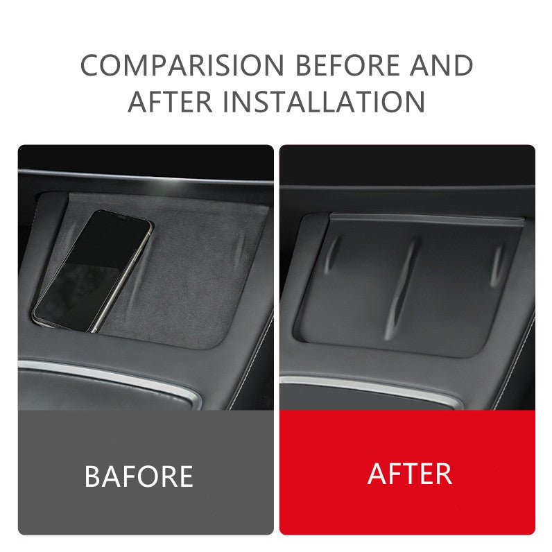 The Tesla wireless charging pad is compatible with the Tesla Model 3 Model Y 2021-2023.10. Thanks to our Tesla wireless charging pad, water damage, debris, dust, and scratches won't be a problem for your wireless charging panel. Made of environmentally friendly soft rubber with good elasticity and anti-slip properties. Odorless and more green. The elongated edge of the silicone pad is wrapped to effectively shield the center console from dust accumulation. Prevents your phone from slipping out of the wireless charging area while driving.