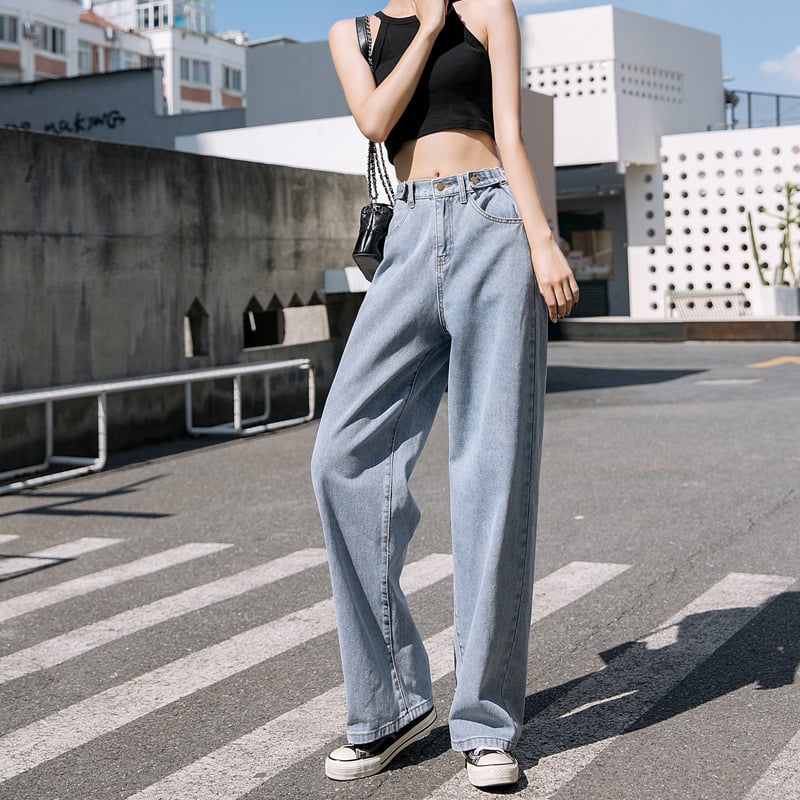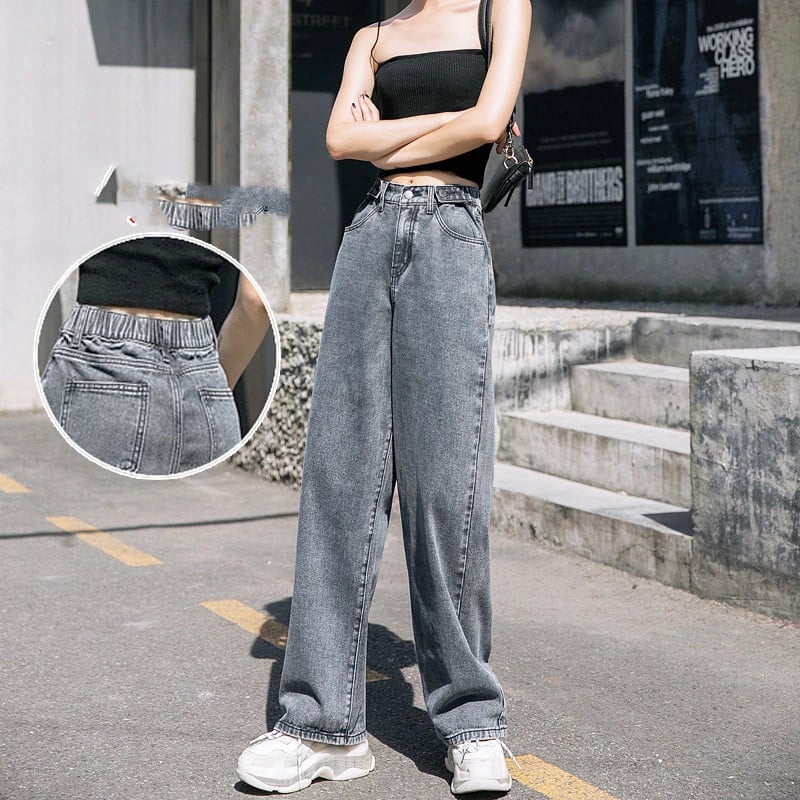 Embrace comfort without sacrificing style with our Women's Elastic Waist Straight Wide Leg Mopping Jeans. Add them to your wardrobe today and experience the difference!