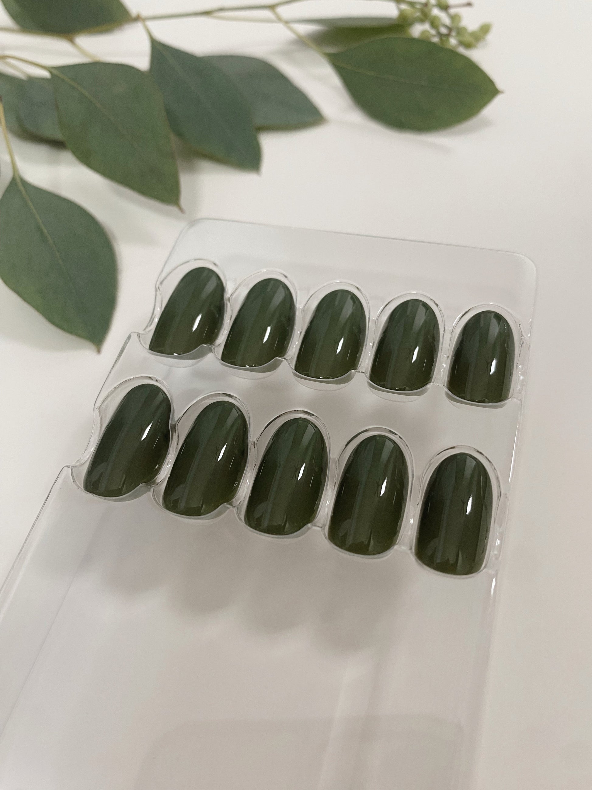 Get ready for the prettiest nails with Woodland! These dark green press on nails are the perfect fall green, adding a touch of nature to your look. No salon visit needed - just press and go!
