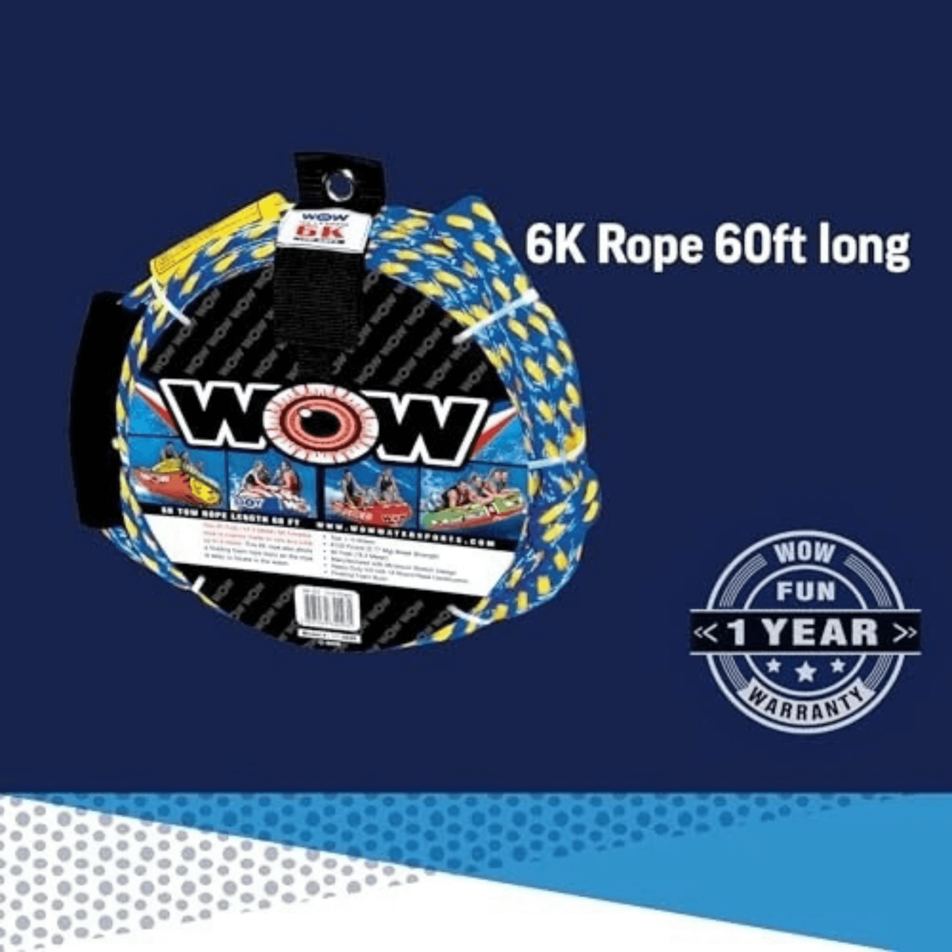 This 6K towable rope is custom-made to tow any tube up to 6 riders. This 6K rope also struts a floating foam rope buoy so the rope is easy to locate in the water.