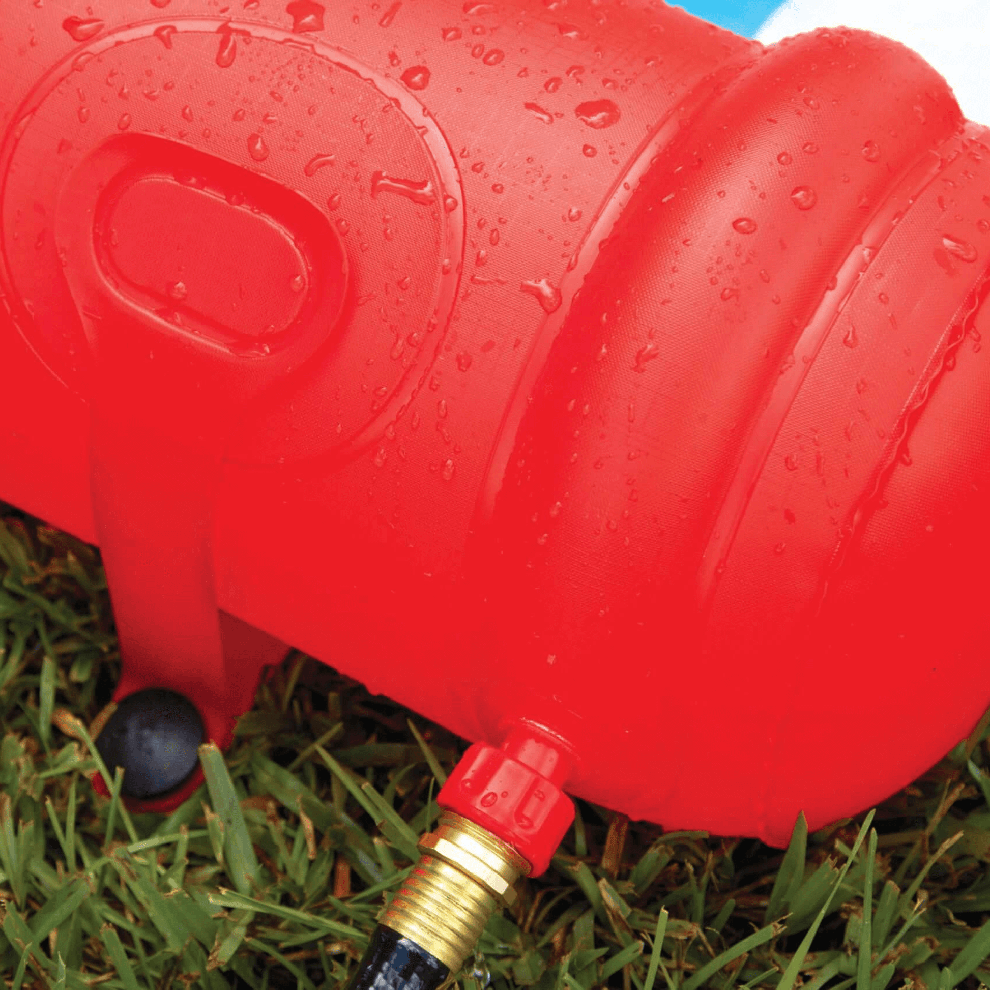 Zig Zag spray pattern sprinkler system runs the length of the slide for awesome water coverage for great sliding