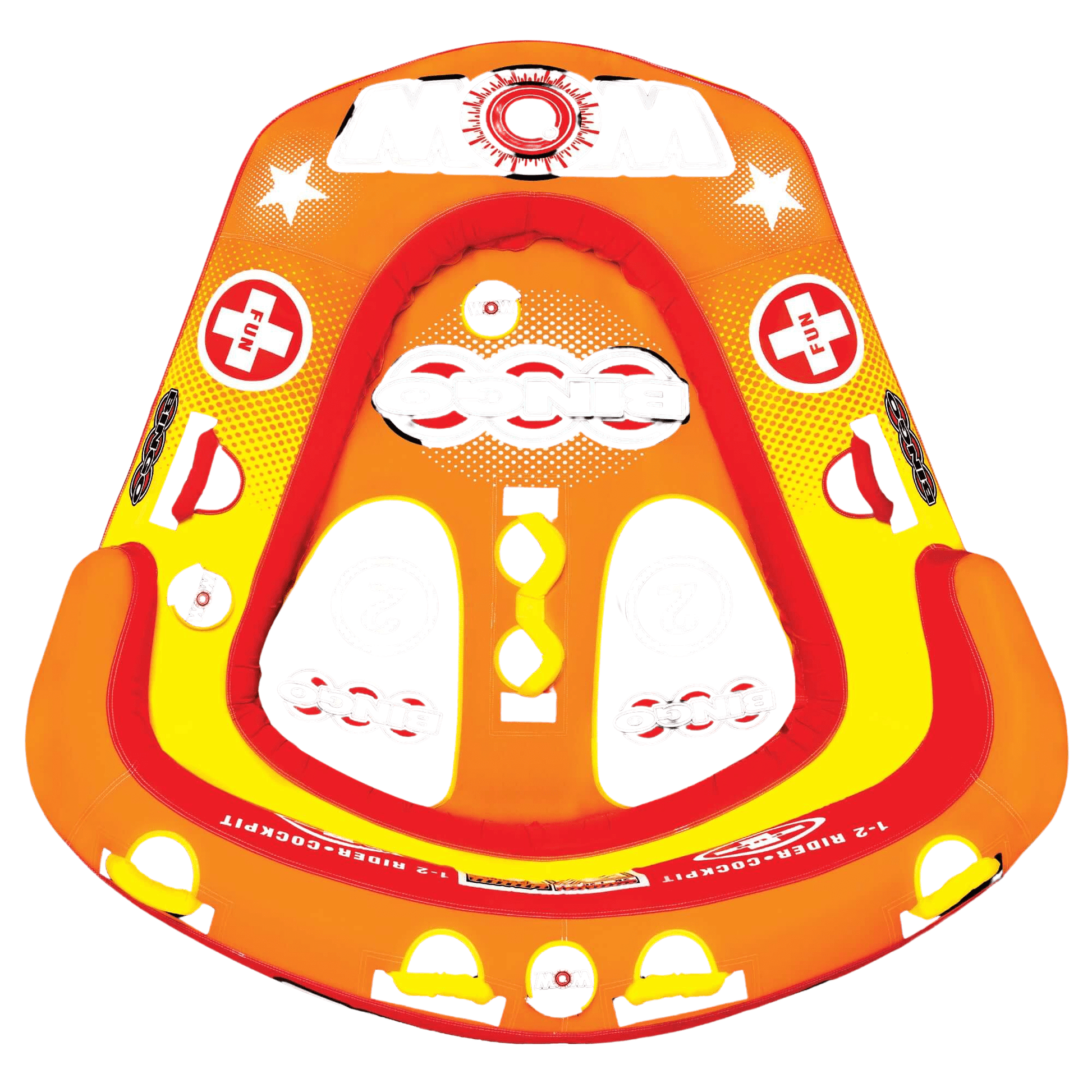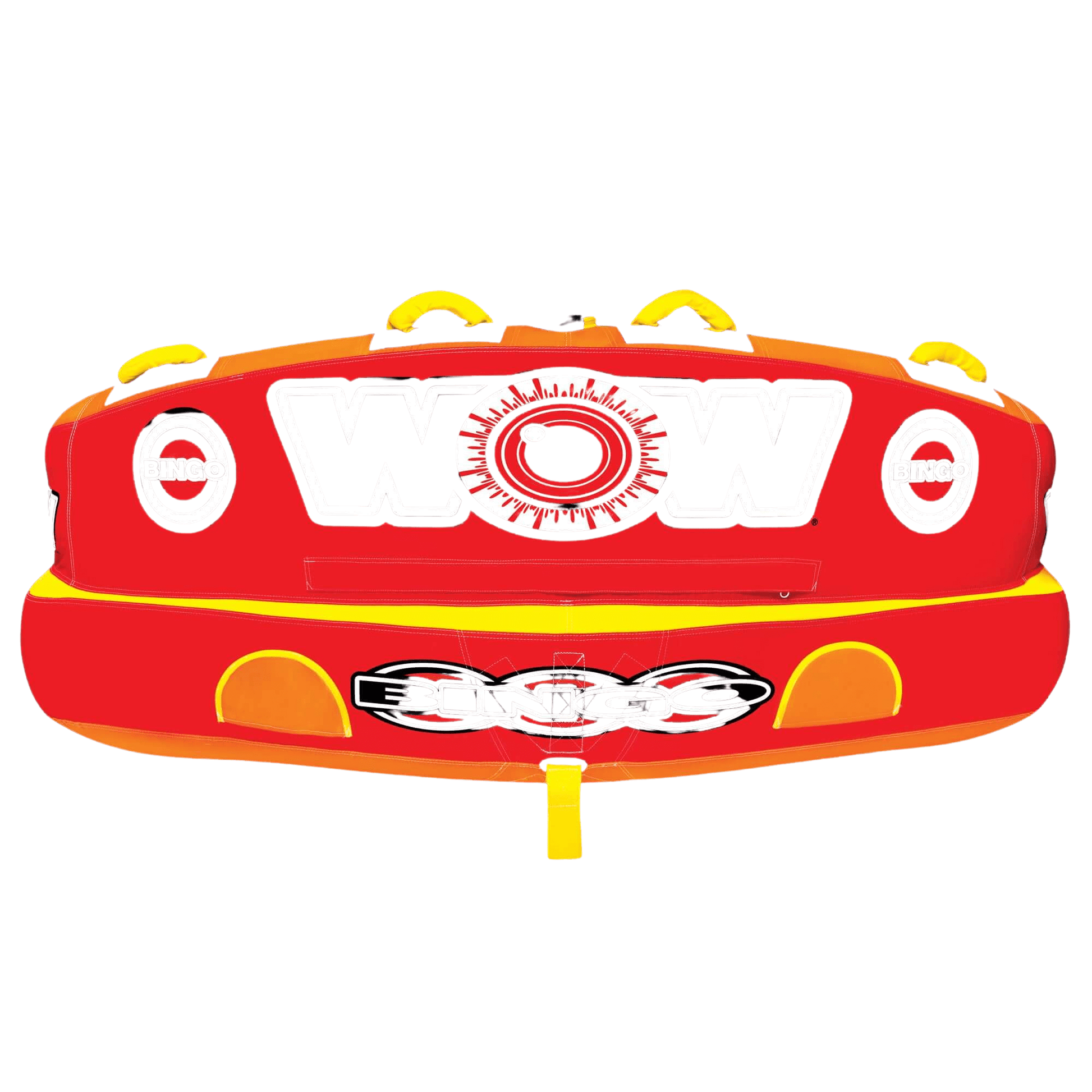 The Bingo 2 was specifically designed with family fun in mind. Another original design from WOW, this action-packed towable gives your family 2 rides for the price of 1. The Bingo tubes are the only cockpit tubes on the market with front and back tow points. Ride in the seated position from the front tow point or connect the rope to the back tow point and ride chariot style. The Bingo comes with a free 11 In 4K EZ tow connector which makes it simple to switch tow points even while on the water. The deep cockpit seating with high backrest makes the riders feel more secure while the new drop speed bottom glides smoothly over the water creating less drag on the boat and therefore better gas mileage. The Bingo 2 will be loved by everyone in the family: from those who like a nice and easy ride to those who want something more extreme.