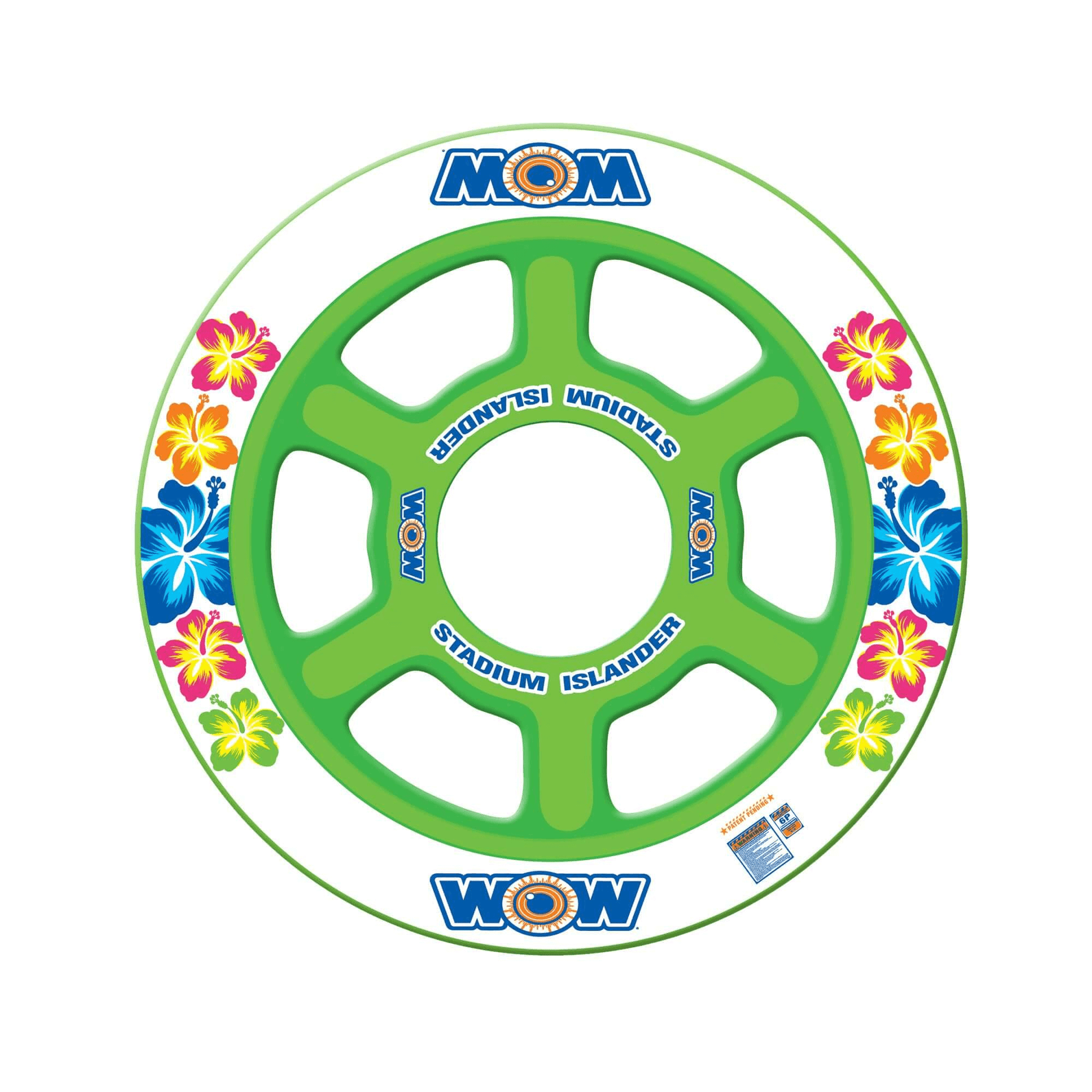 The 6 person Stadium Islander from WOW is an awesome value! It is over 8.5 feet in diameter and seats up to 6 adults very comfortably. The outer ring is 14 inches high and acts as a great backrest for chillaxing with your favorite people on your favorite body of water. Each seat has a mesh bottom to keep you cool during those hot summer days. The open center makes it easy to get on and off for the kids and the grandparents. The whole family can join in the fun! And to top it all off, it looks great. The Stadium Islander is exactly what you need for a great day at the lake.
